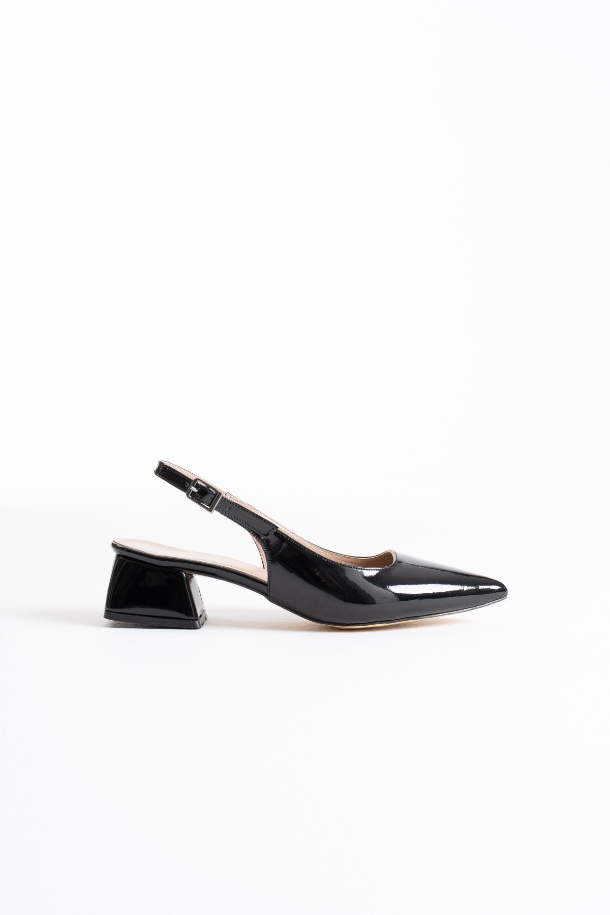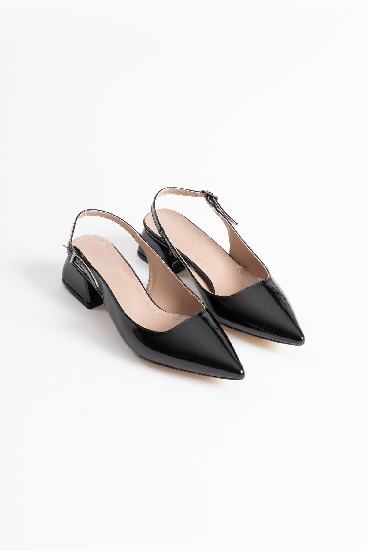 Toran Beyaz Rugan Siyah Süet Detaylı Topuklu Ayakkabı