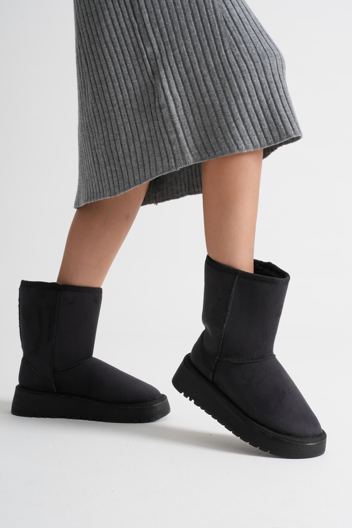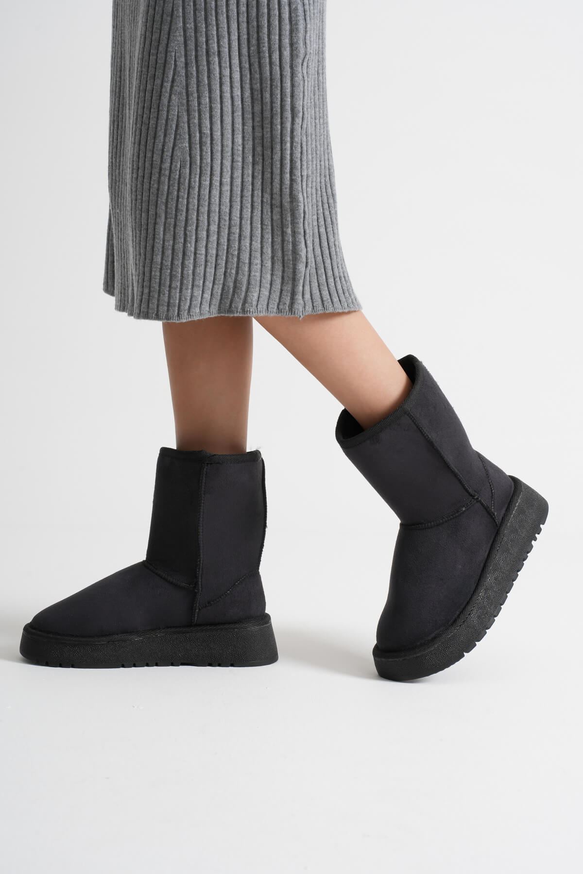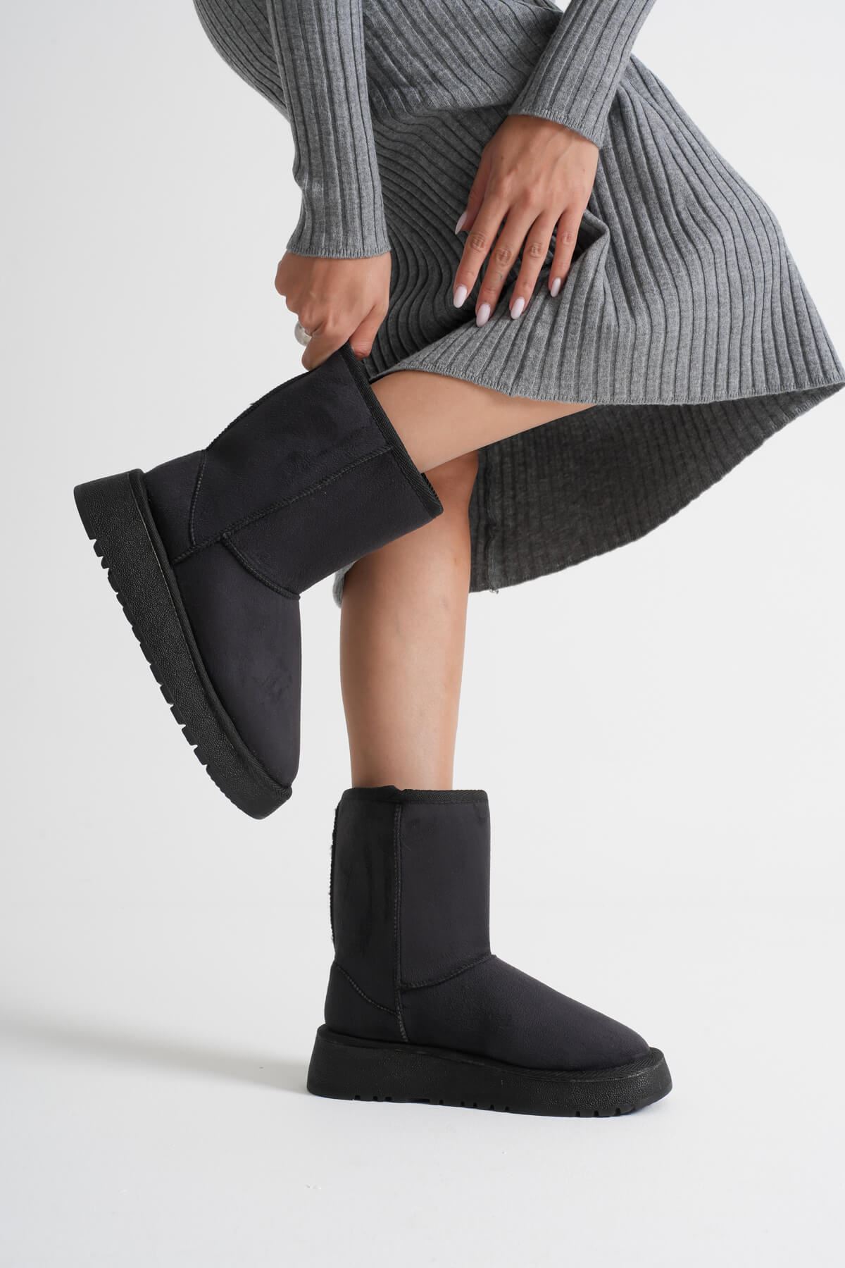 Elena Kadın Siyah Kışlık İçi Kürklü Kalın Taban Bot