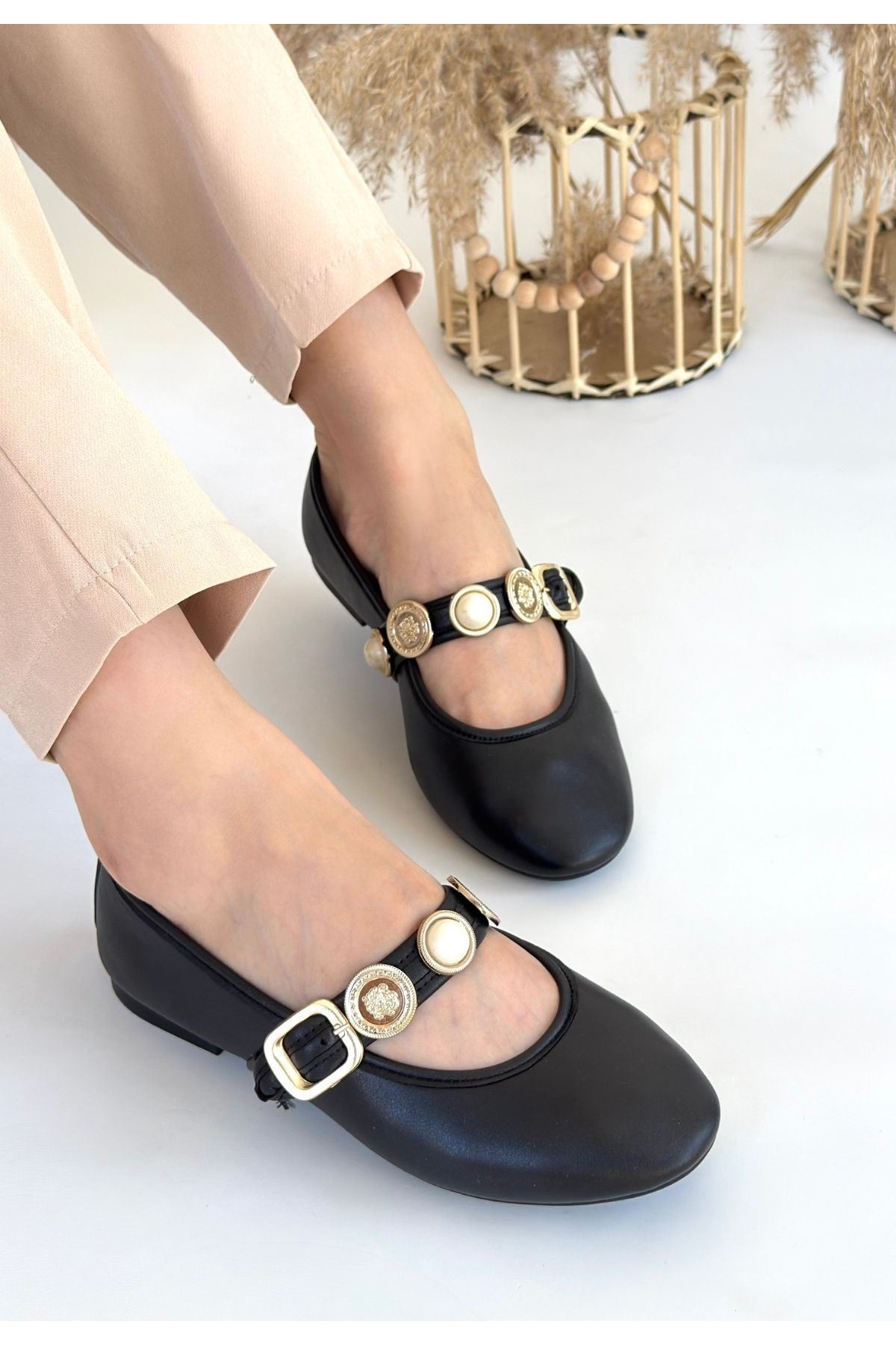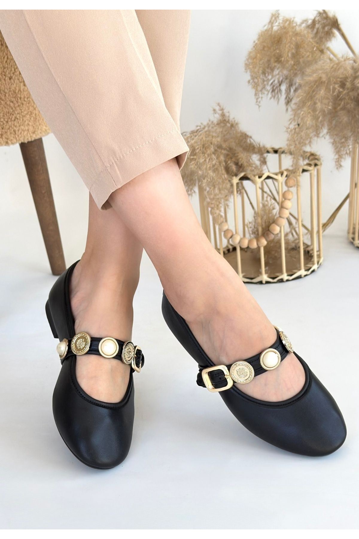 Atnis Siyah Cilt Babet Ayakkabı