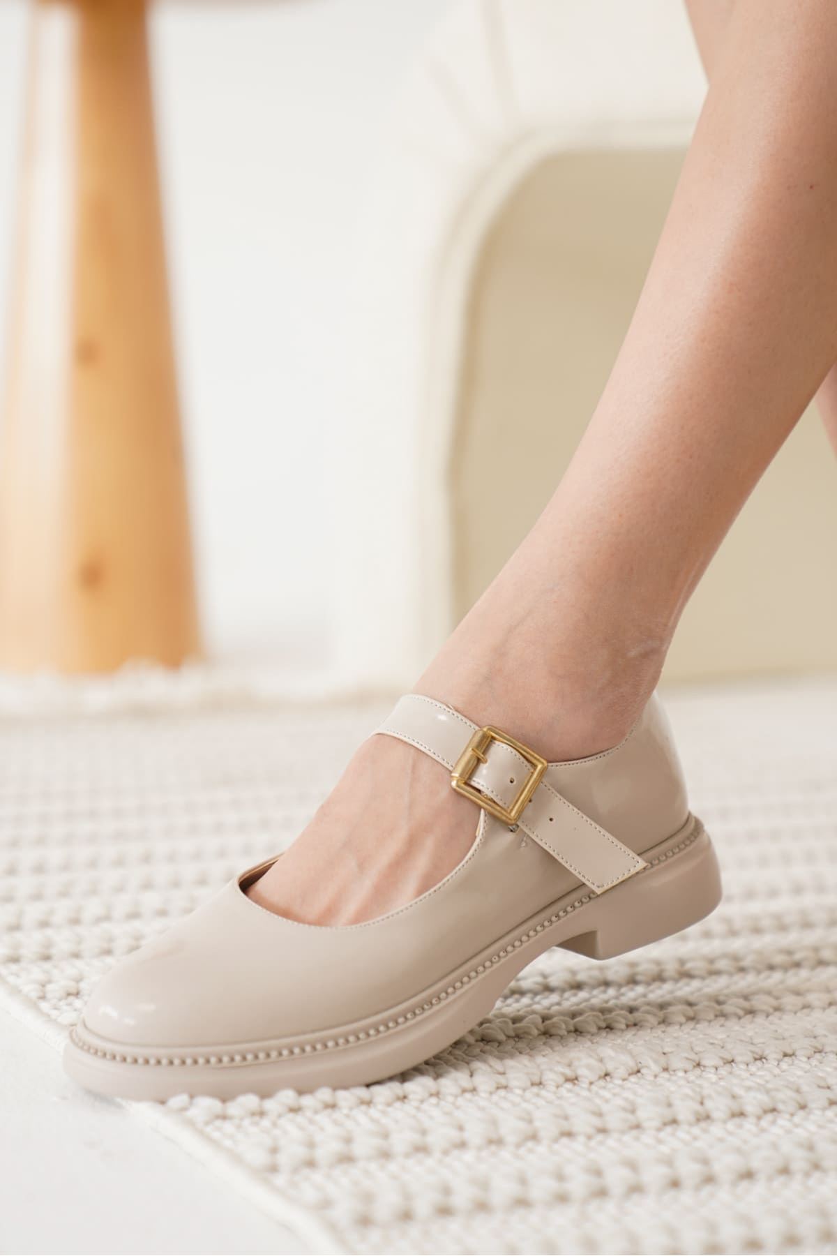 Briana Bej Rugan Toka Detaylı Mary Jane Ayakkabı