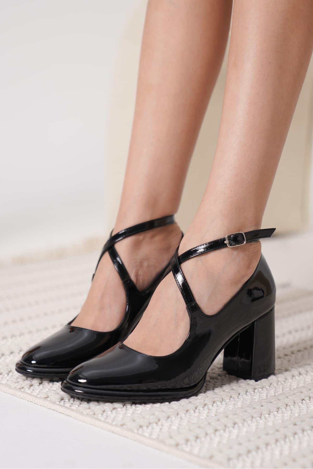 Cali Siyah Rugan Kadın Topuklu Ayakkabı