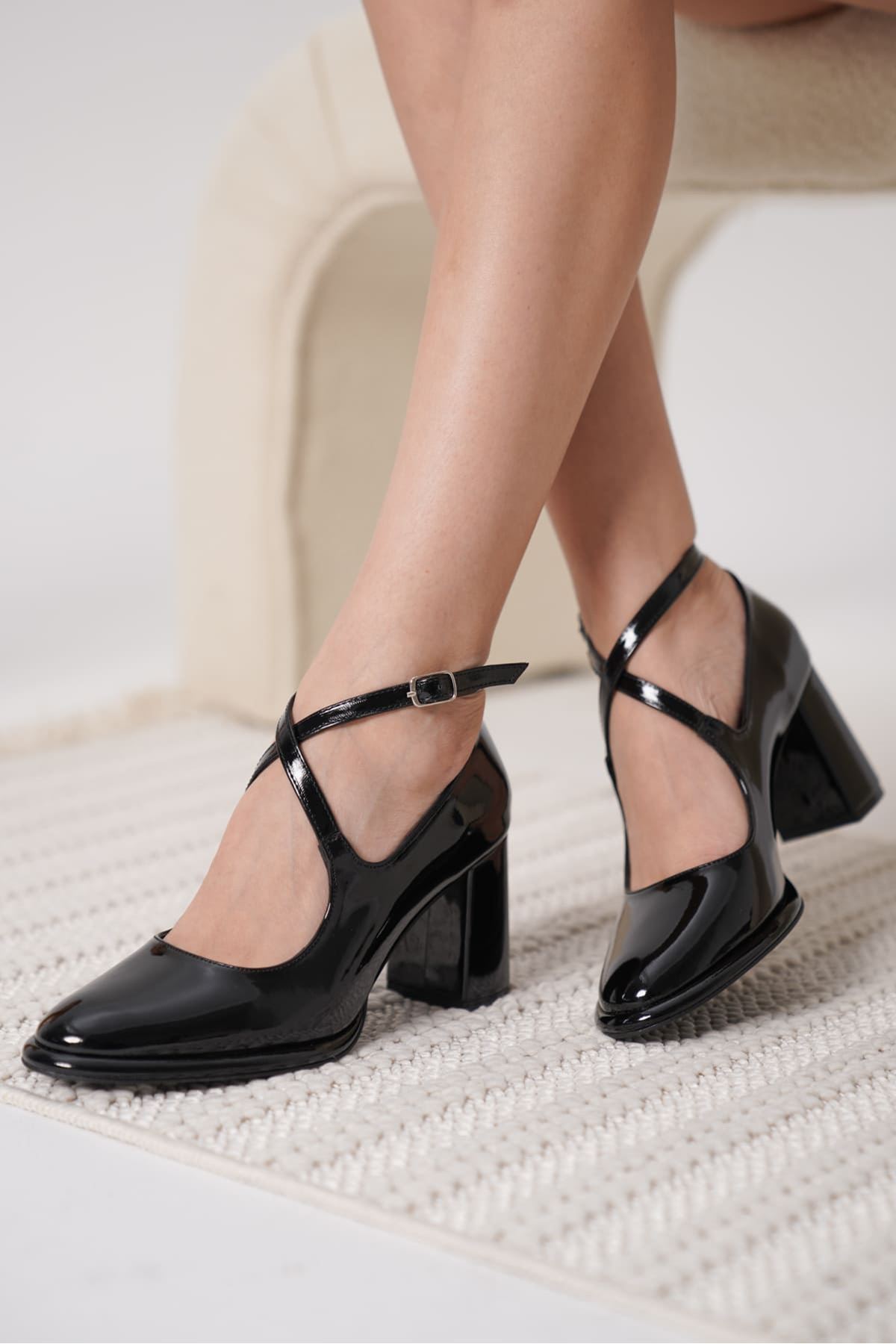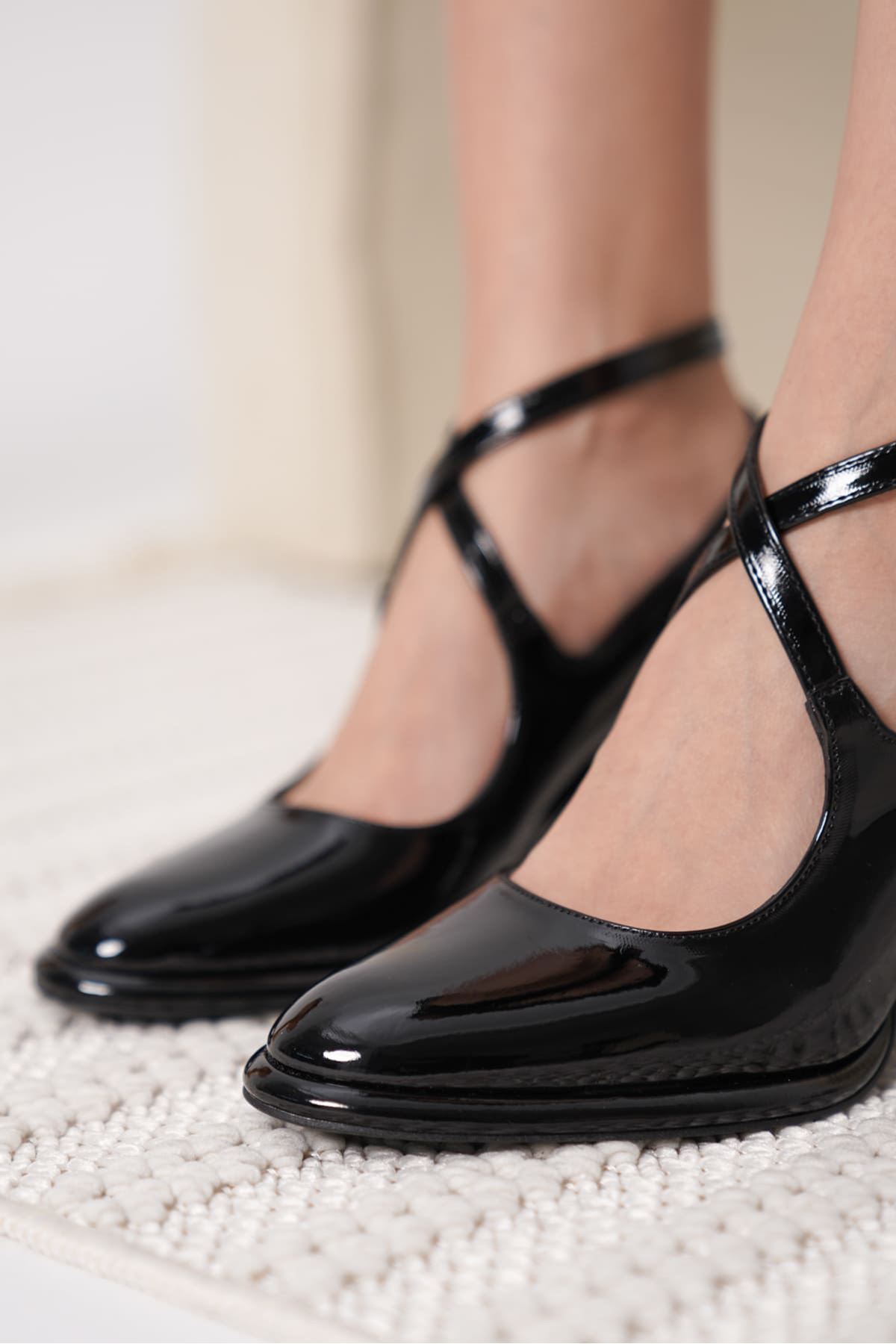 Taila Siyah Rugan Kadın Topuklu Ayakkabı