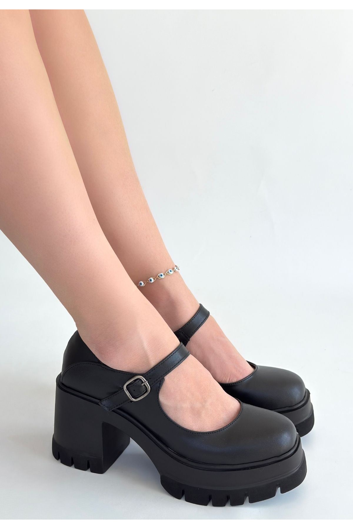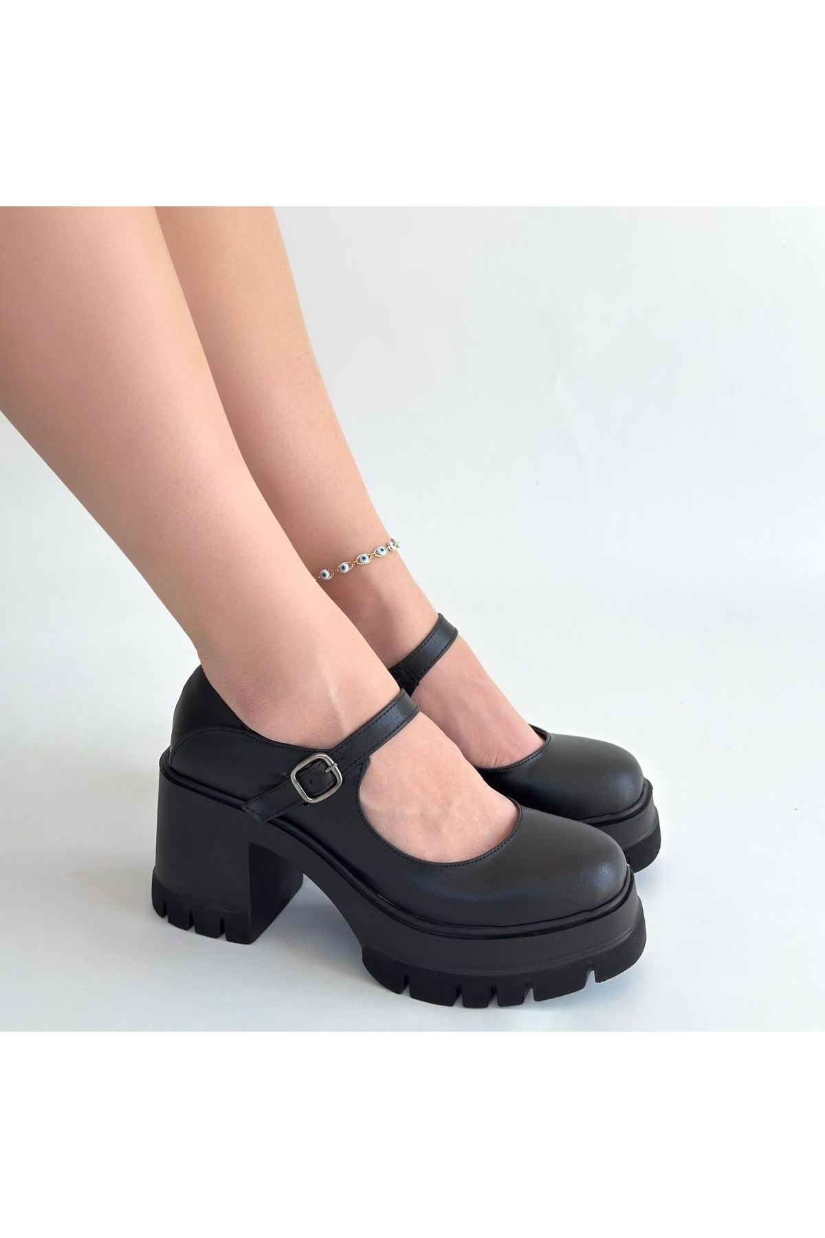 Dlor Siyah Cilt Dolgu Topuk Ayakkabı