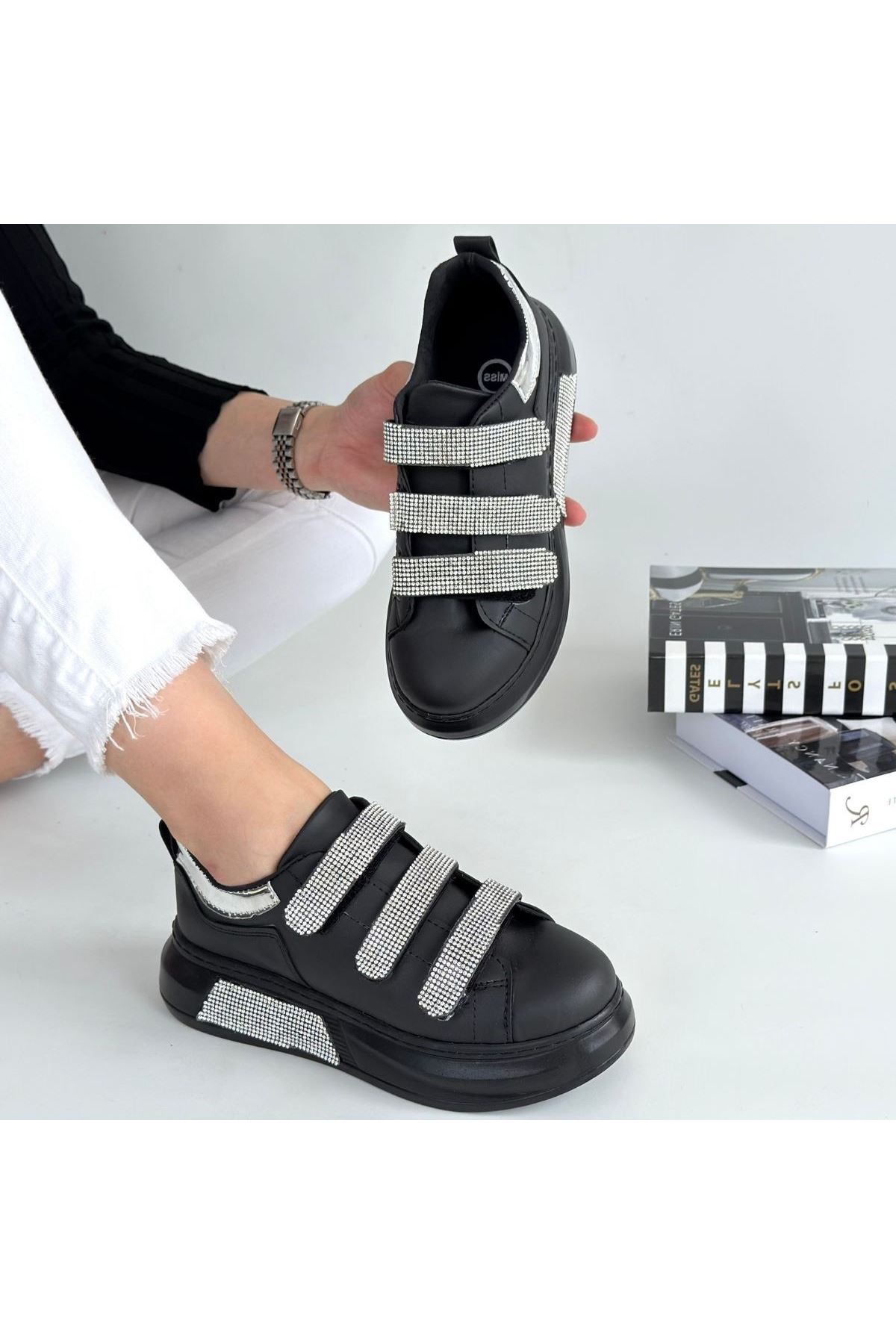 Elika Siyah Cilt Cırt Cırtlı Spor Ayakkabı