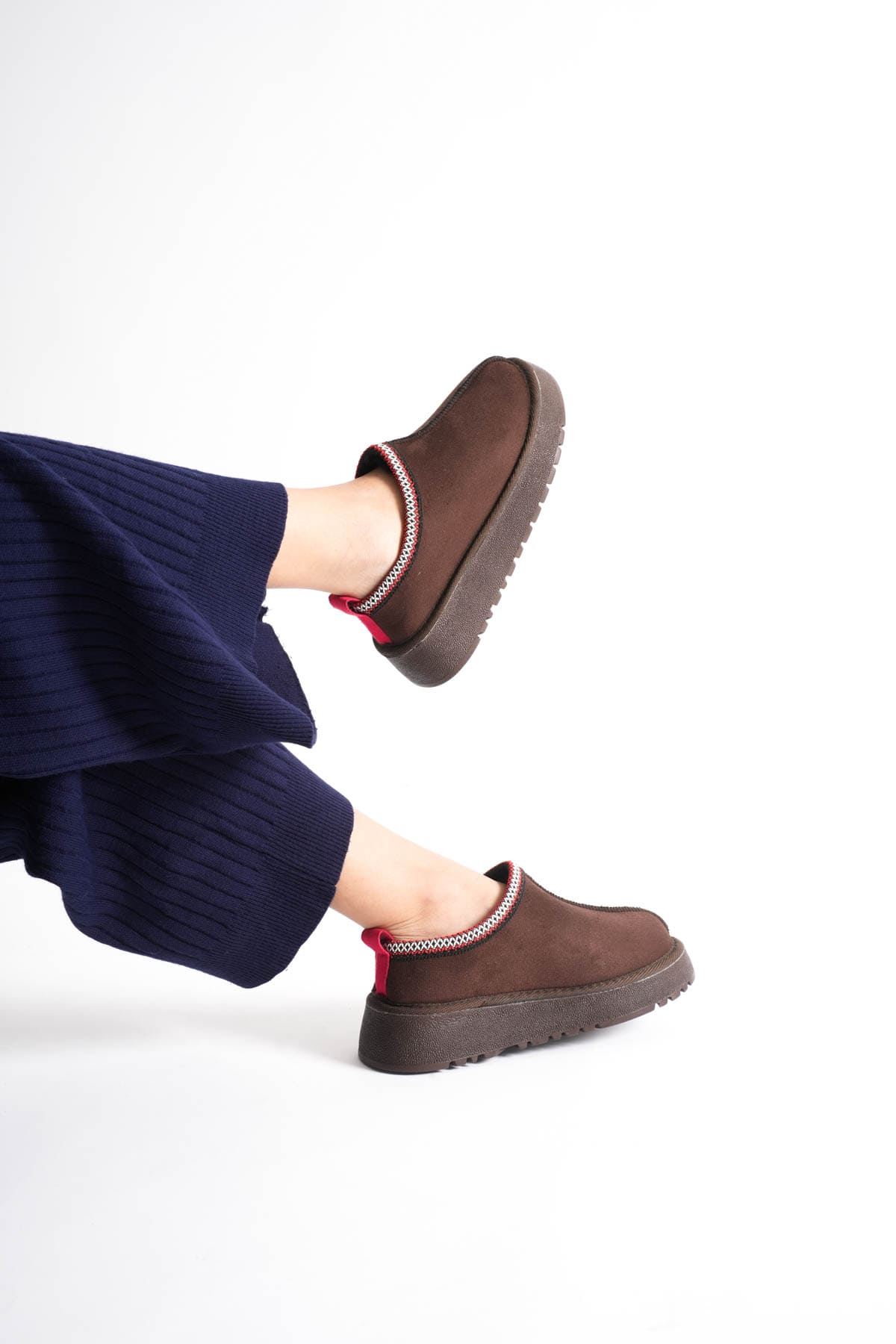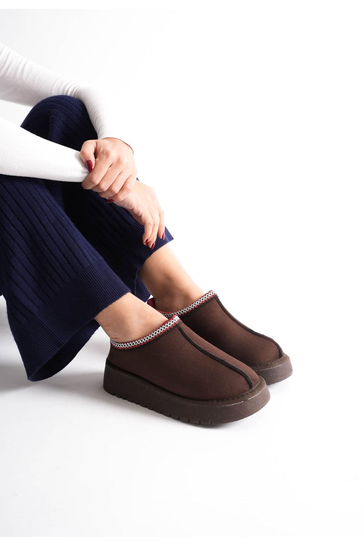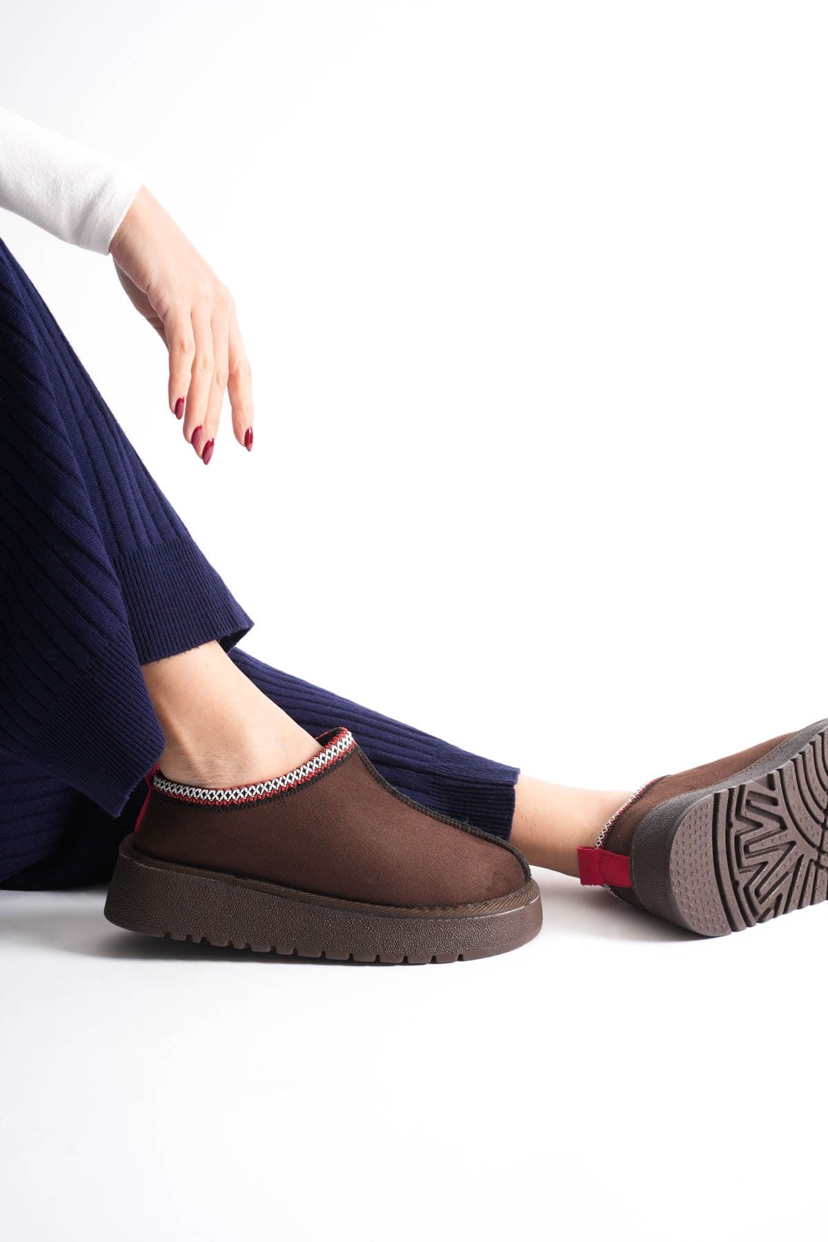 Elsa Kadın Acı Kahve Kışlık Kürklü Terlik