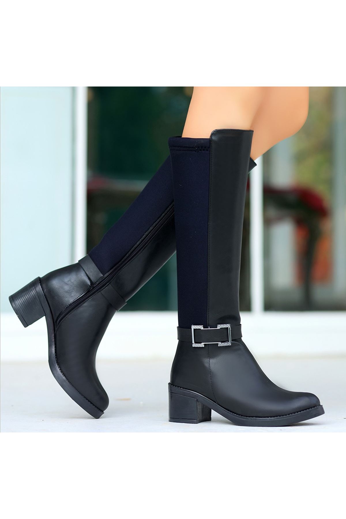 Detay: Topuklu Yandan Fermuarlı Arka Kısmı Streç Diz Altı Çizme