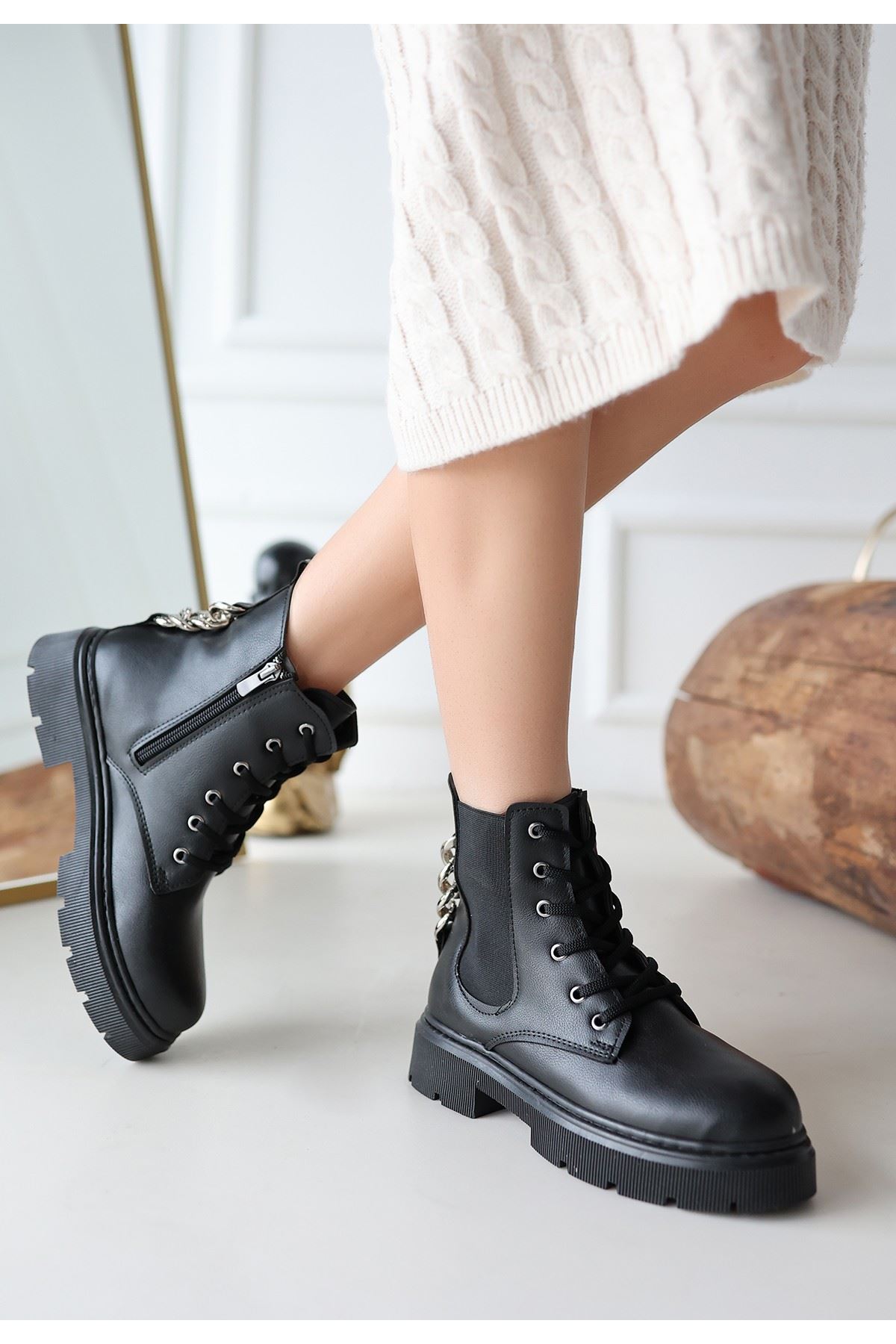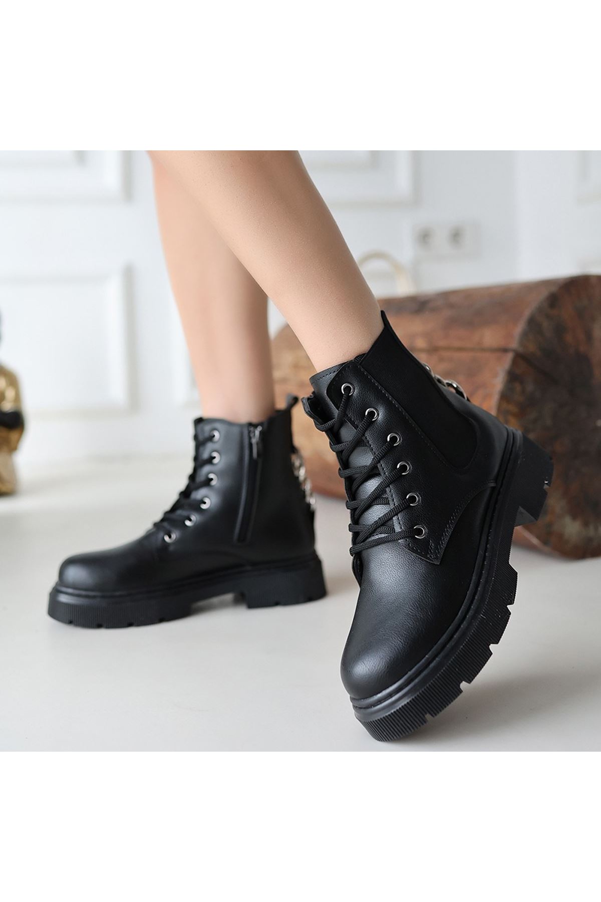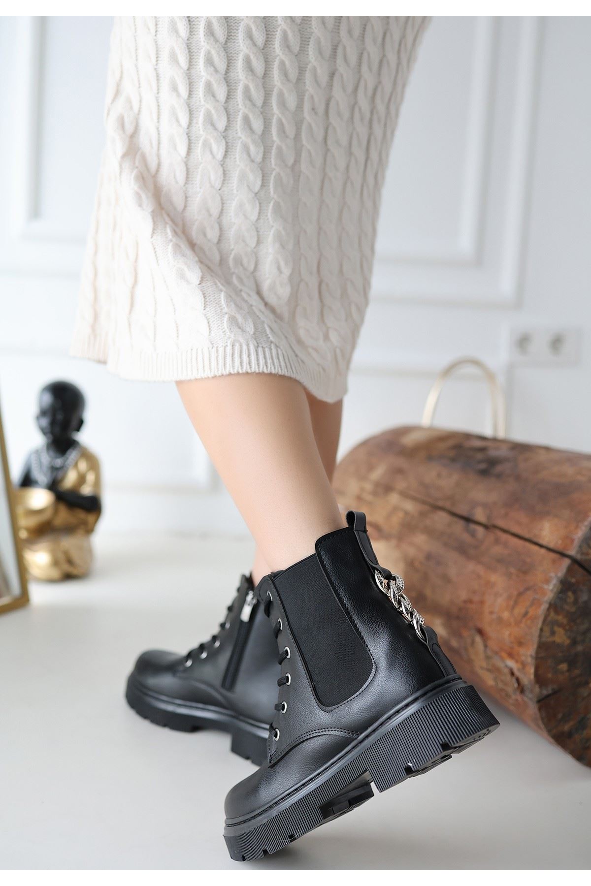 Detay : Topuklu Yandan Fermuarlı Bağcıklı Bot