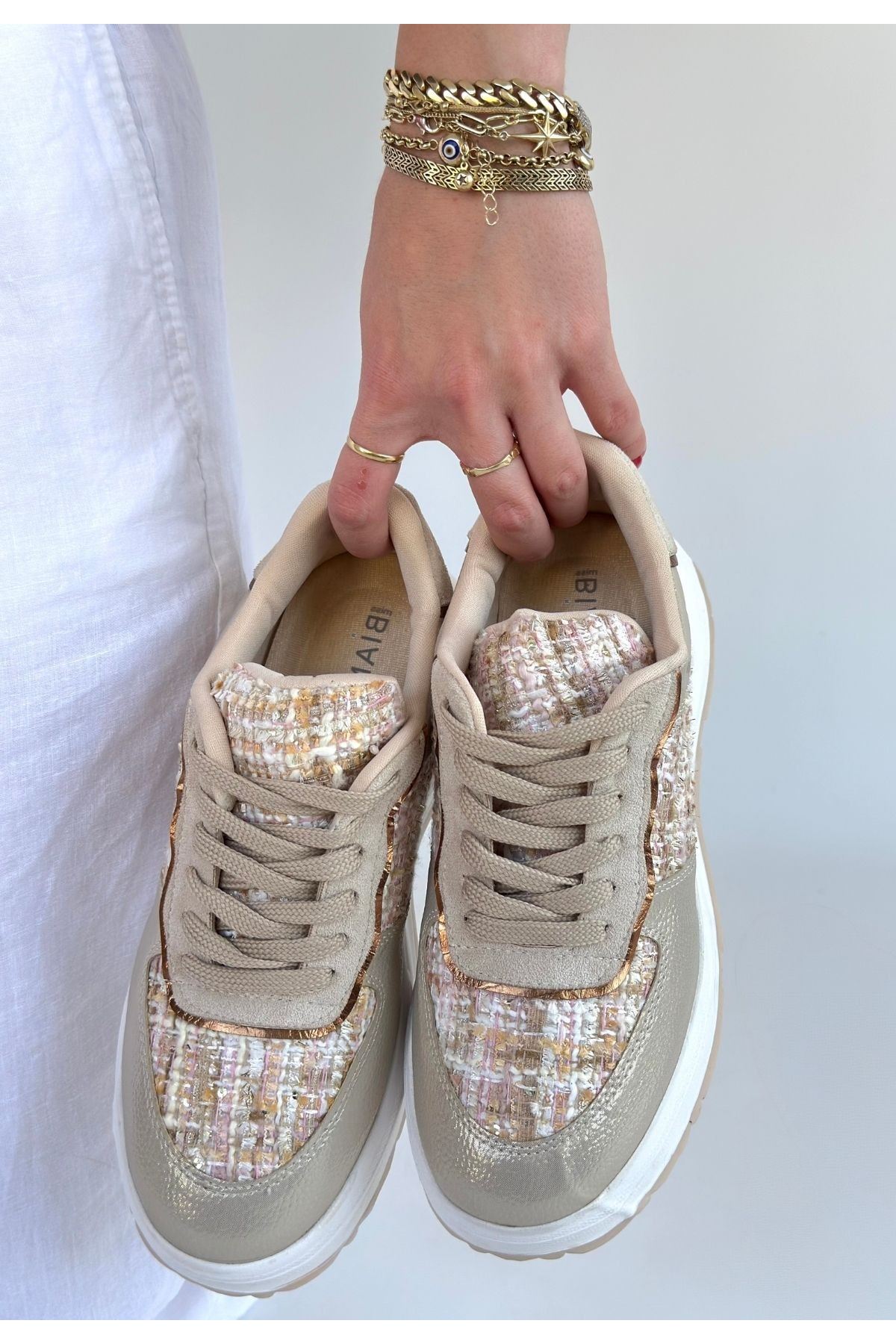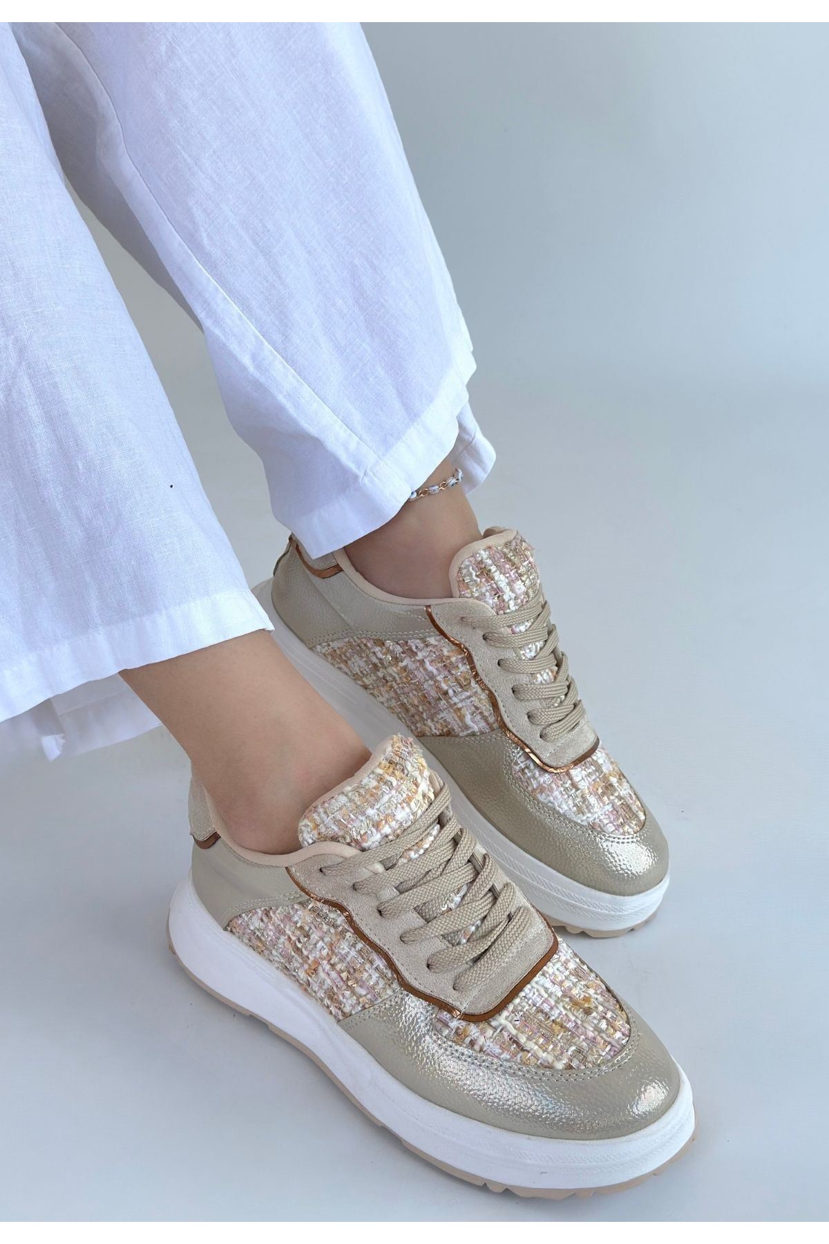Hawer Bej Cilt Bağcıklı Spor Ayakkabı