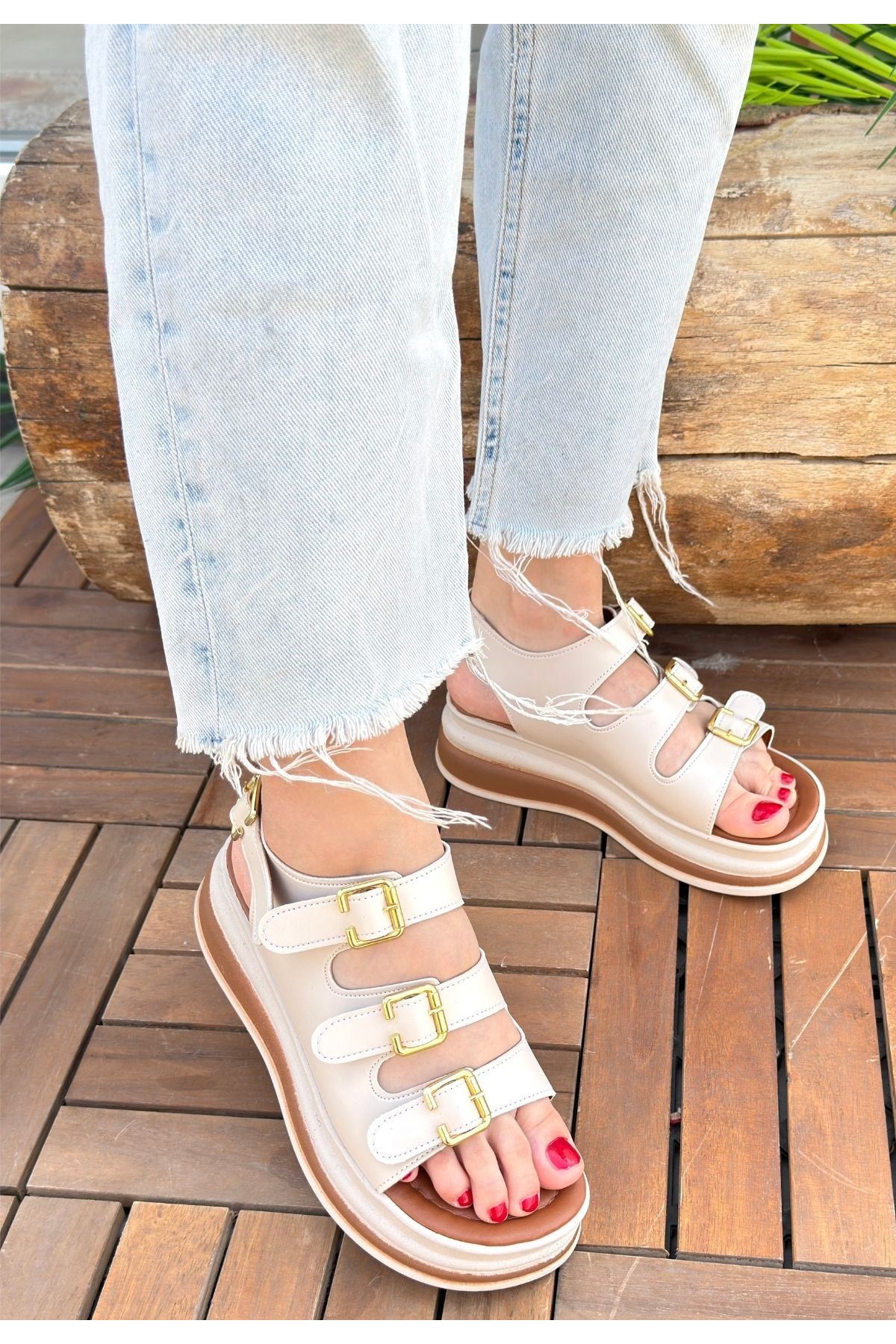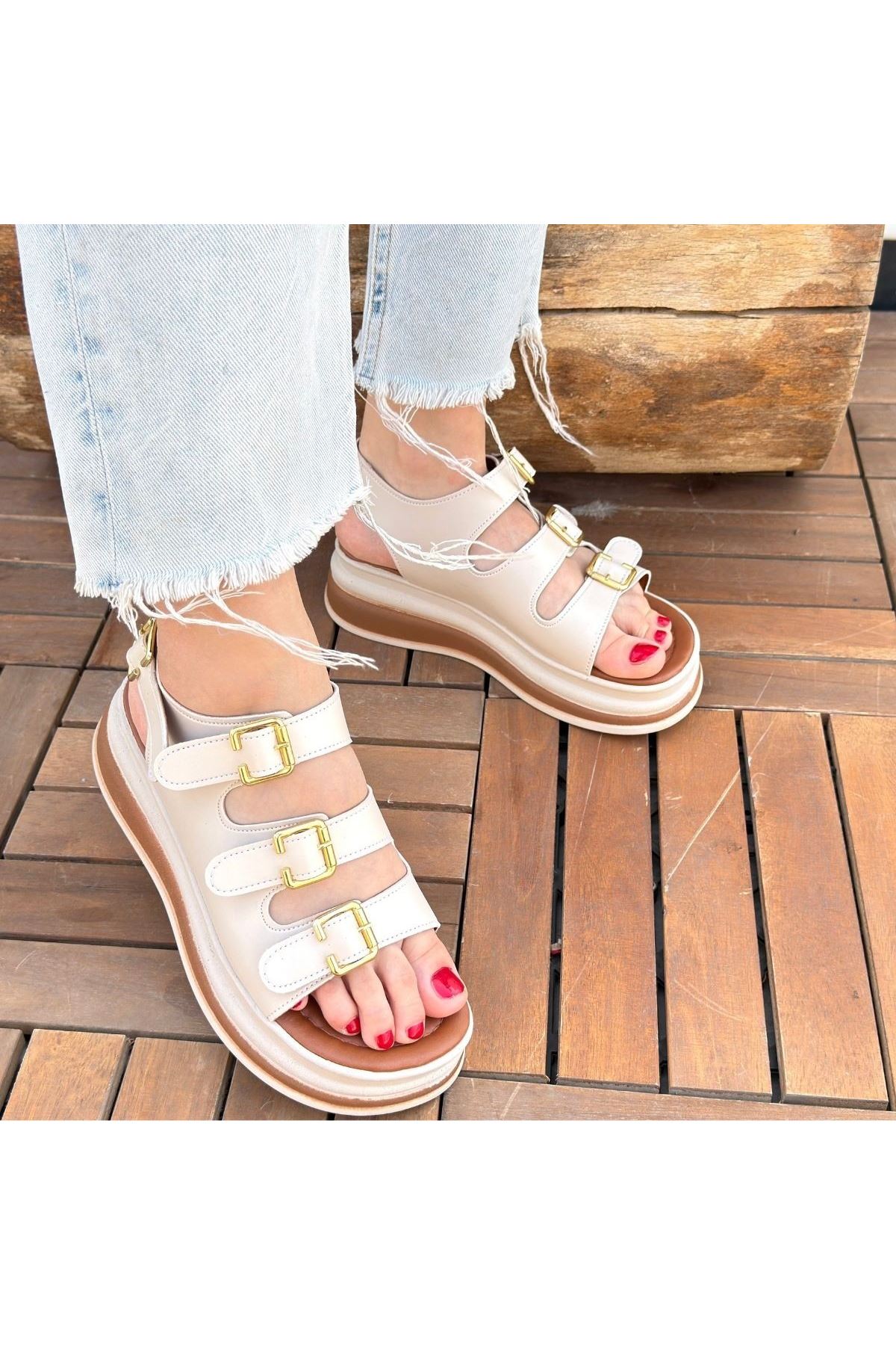 Detay : Tokalı Kemerli Ortapedik Sandalet