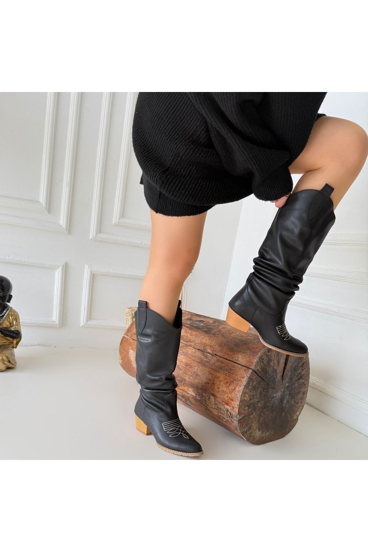 Detay: Topuklu Diz Altı Koboy Körüklü Çizme