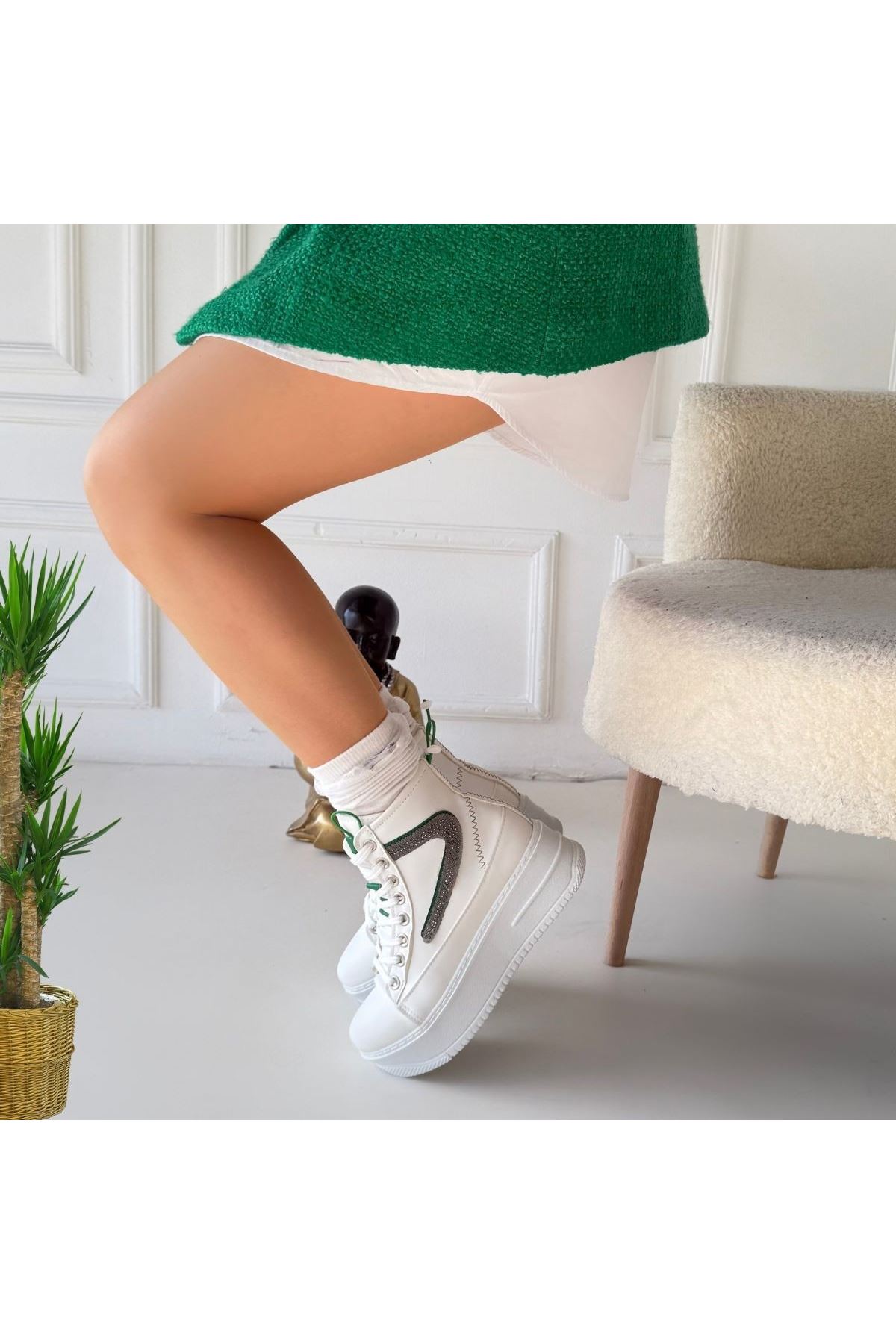 Joila Beyaz Cilt Yeşil Detaylı Bot
