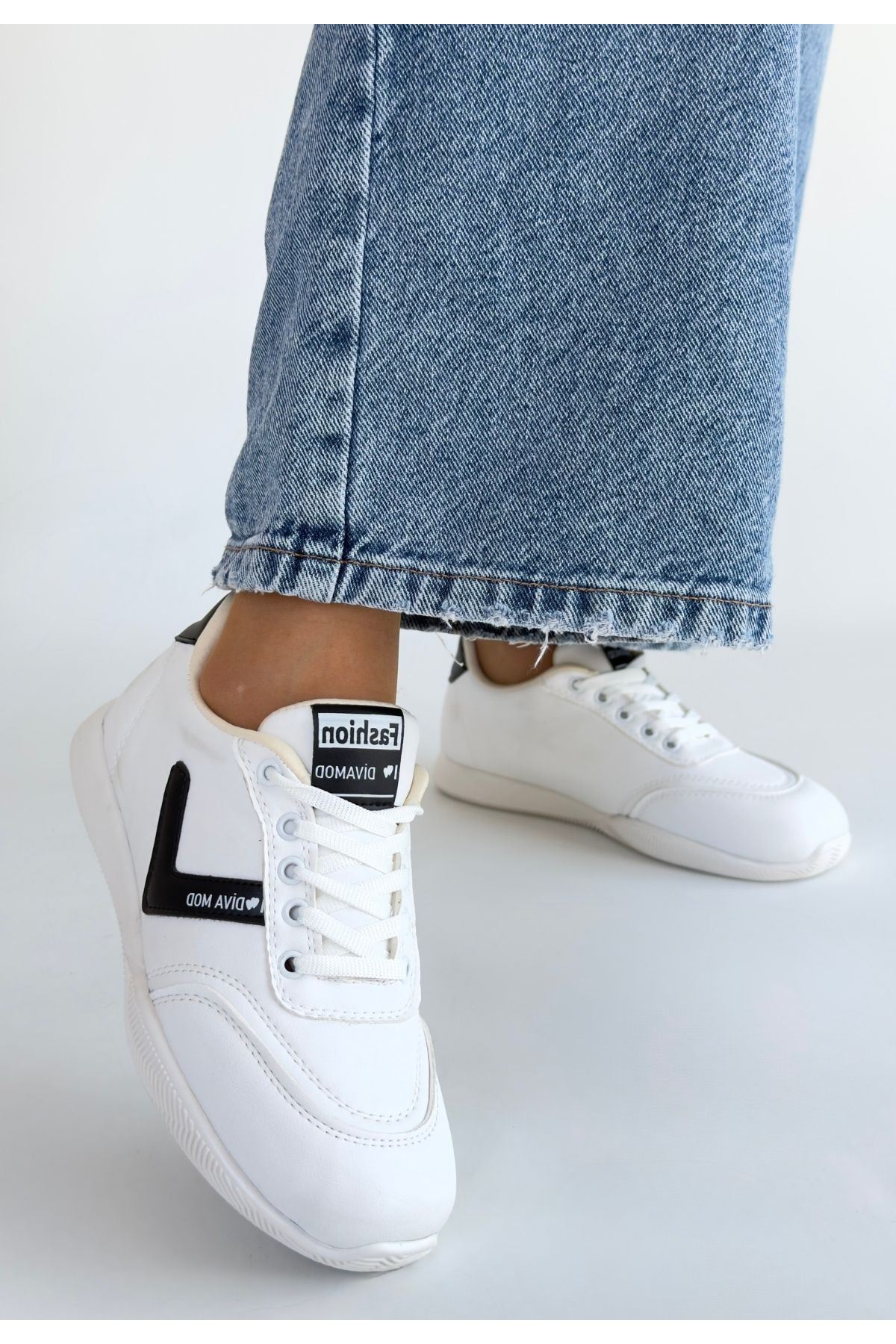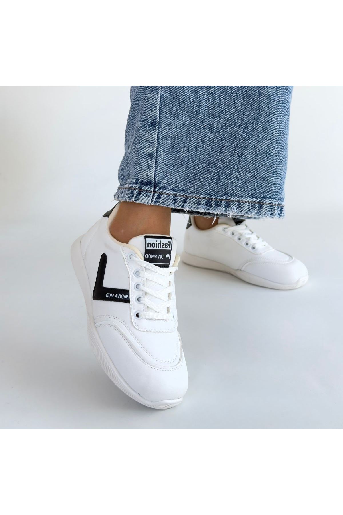 Jowen Beyaz Cilt Siyah Detaylı Bağcıklı Spor Ayakkabı