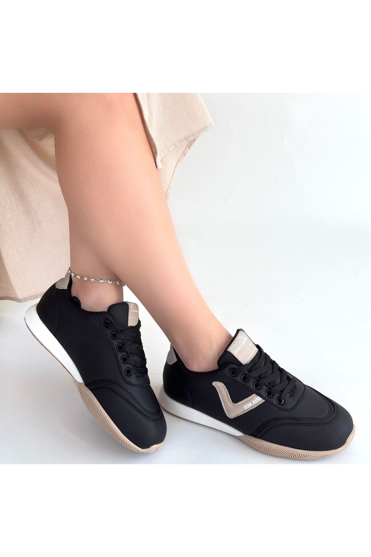 Jowen Siyah Cilt Bej Detaylı Bağcıklı Spor Ayakkabı