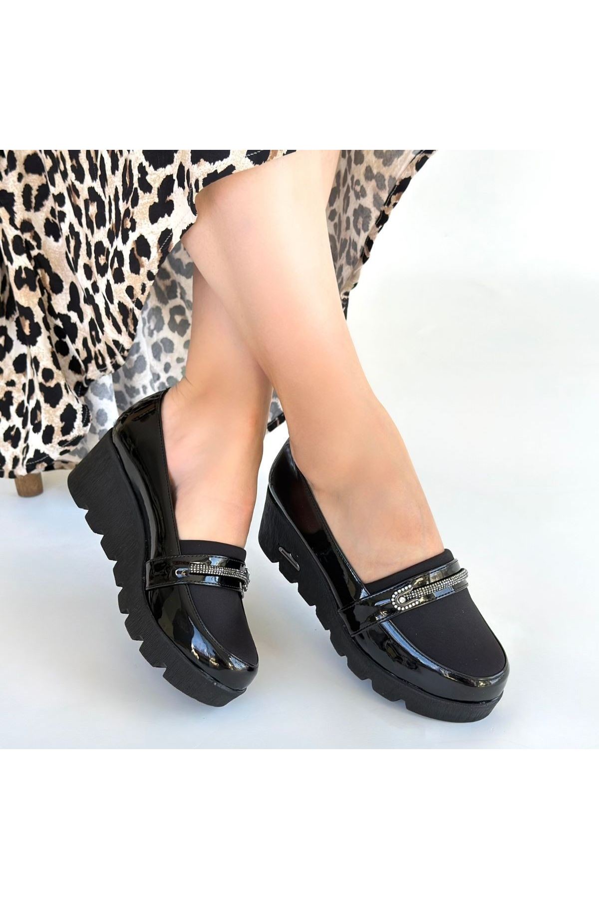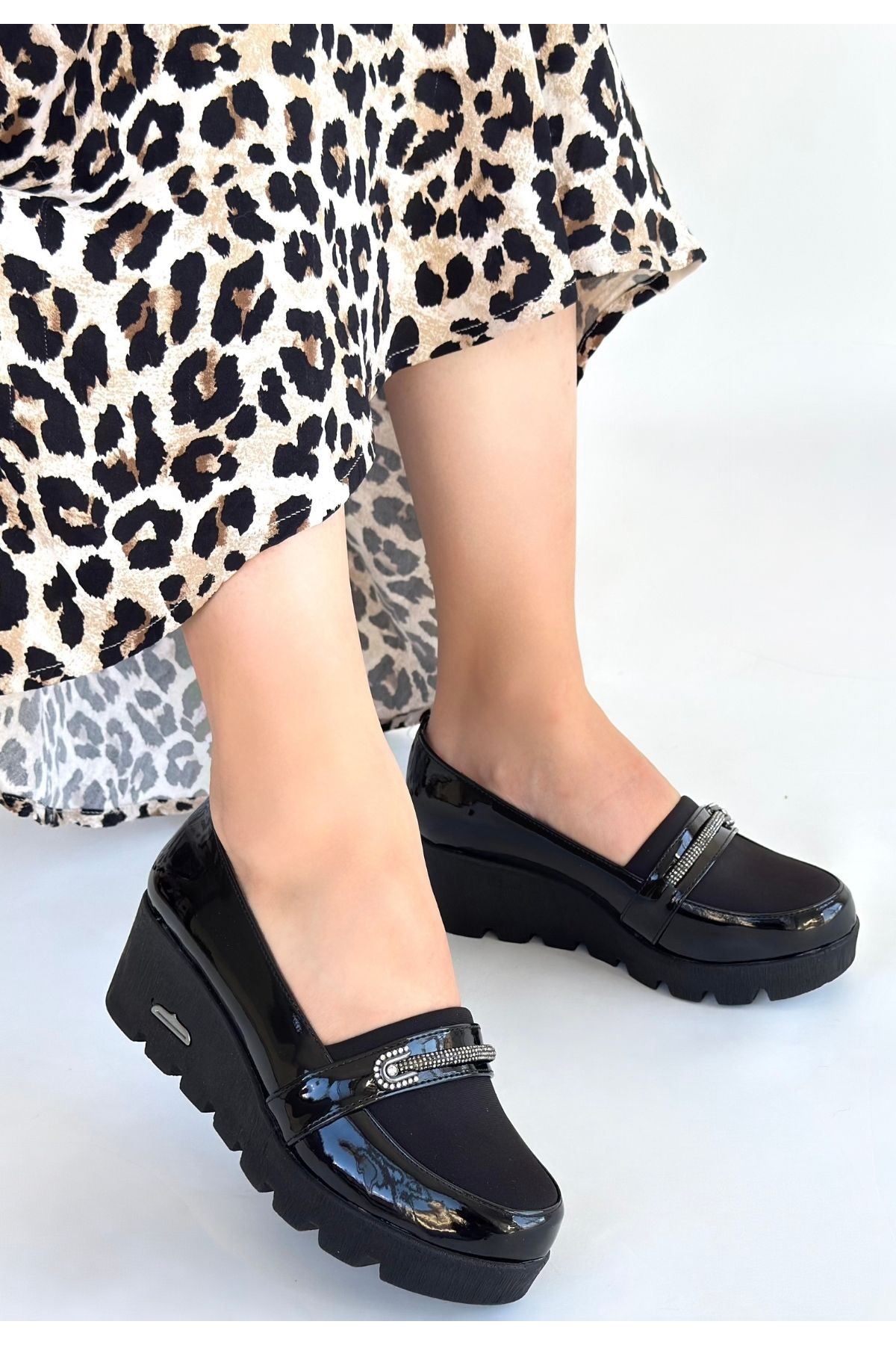 Kear Siyah Rugan Dolgu Topuk Ayakkabı