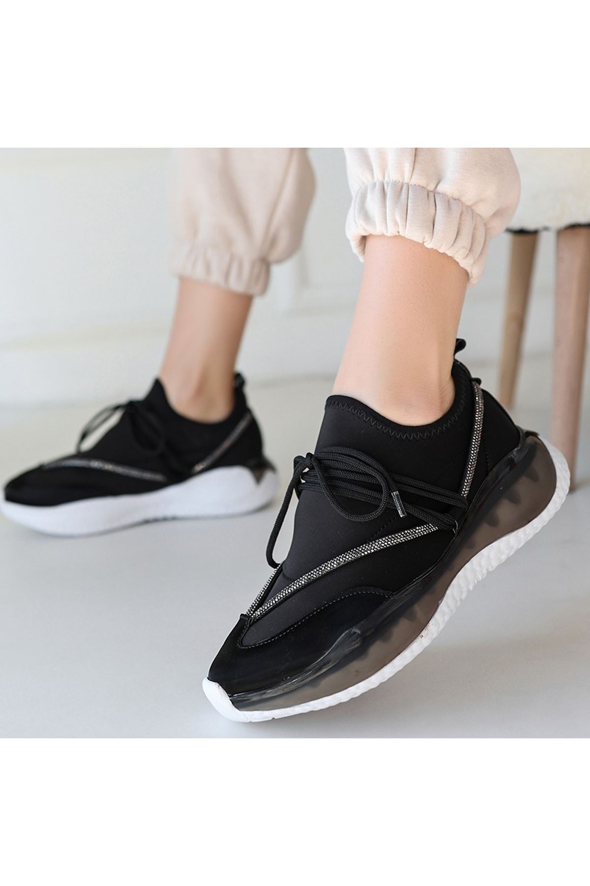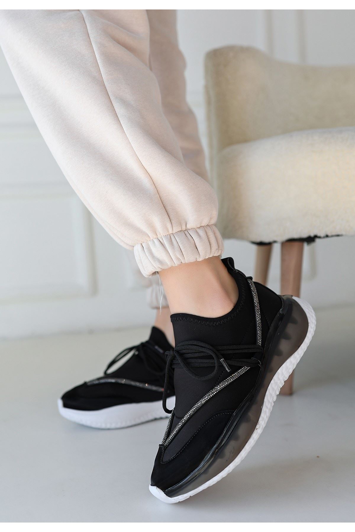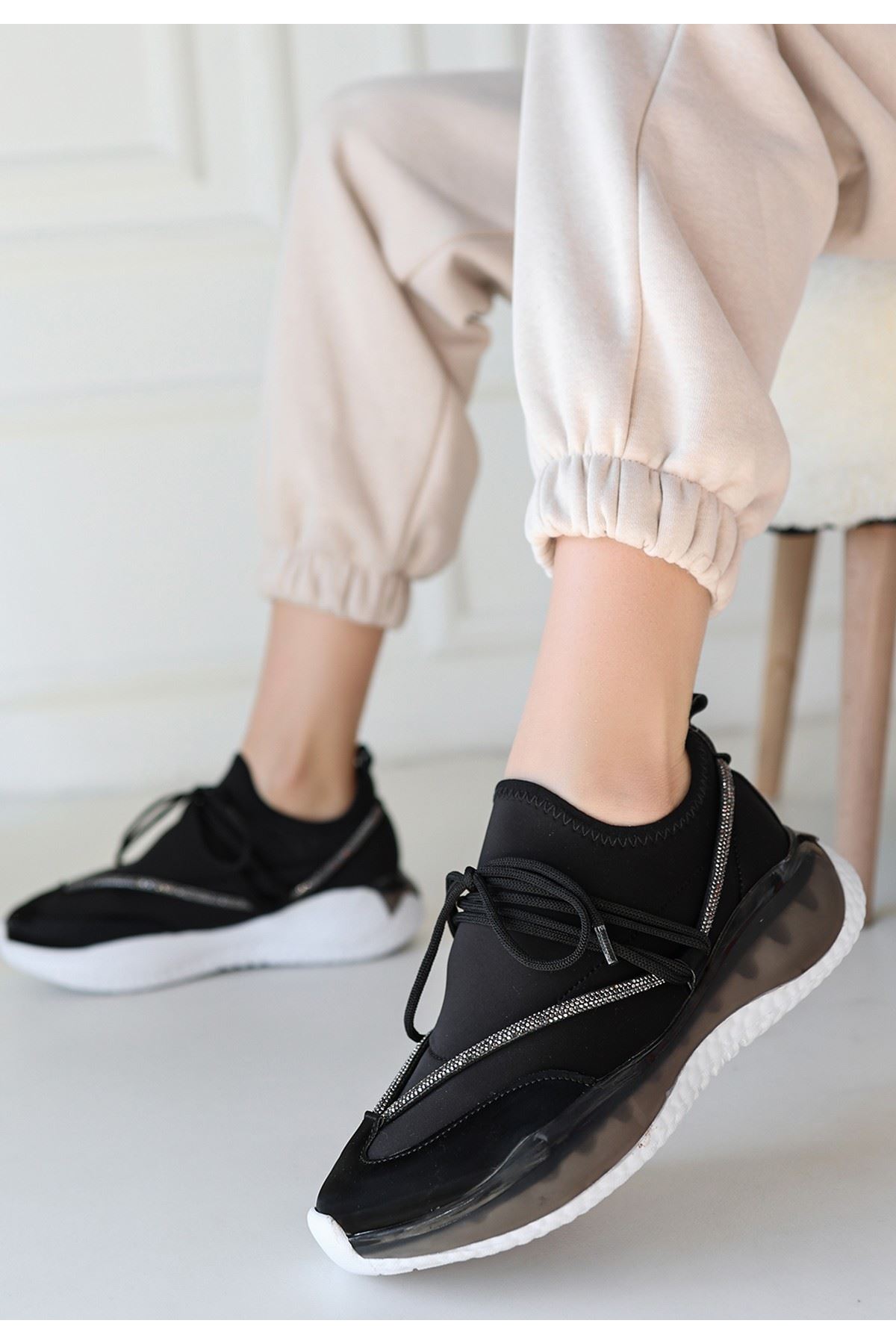 Liney Siyah Rugan Bağcıklı Spor Ayakkabı