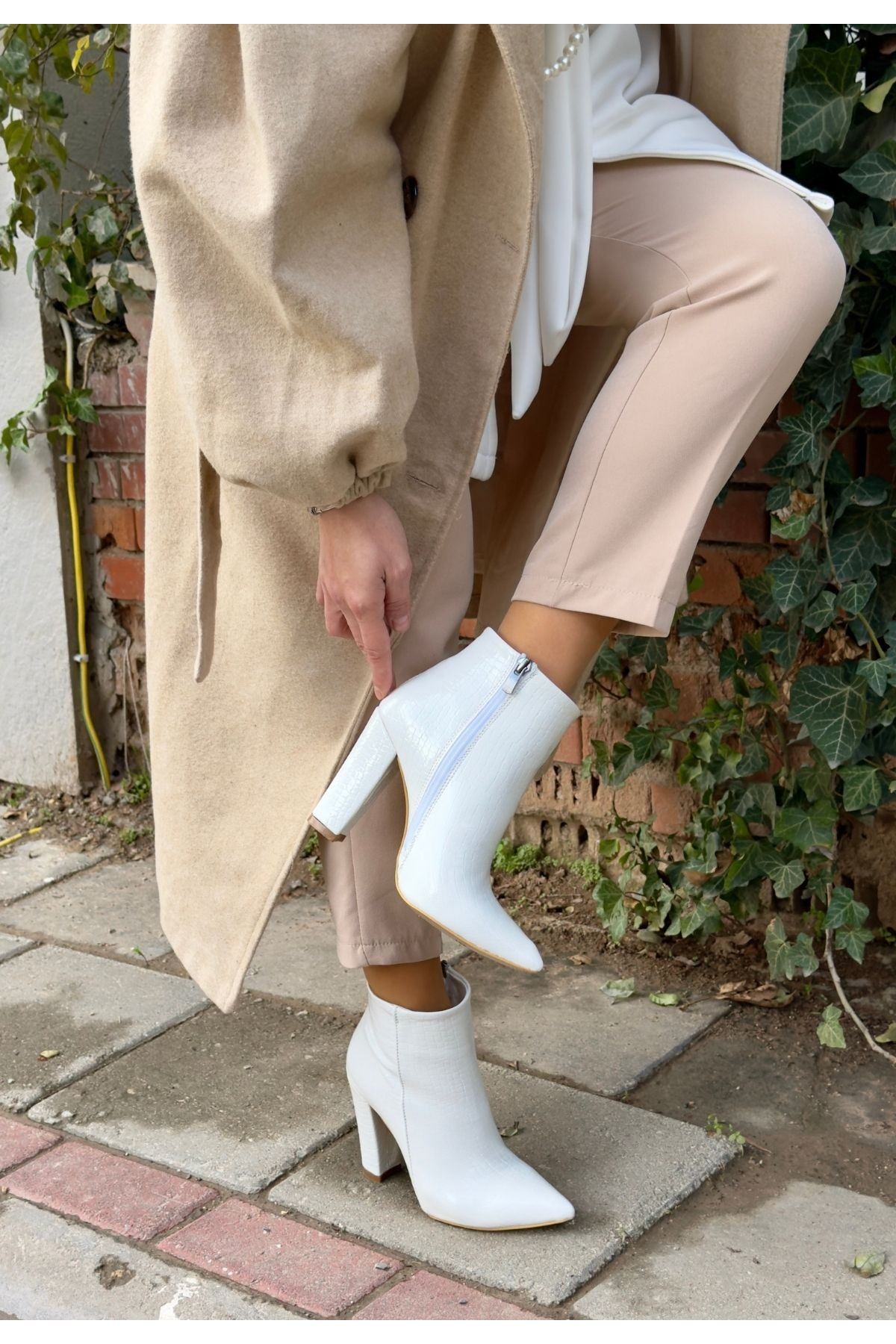 Loora Beyaz Rugan Desenli Topuklu Bot