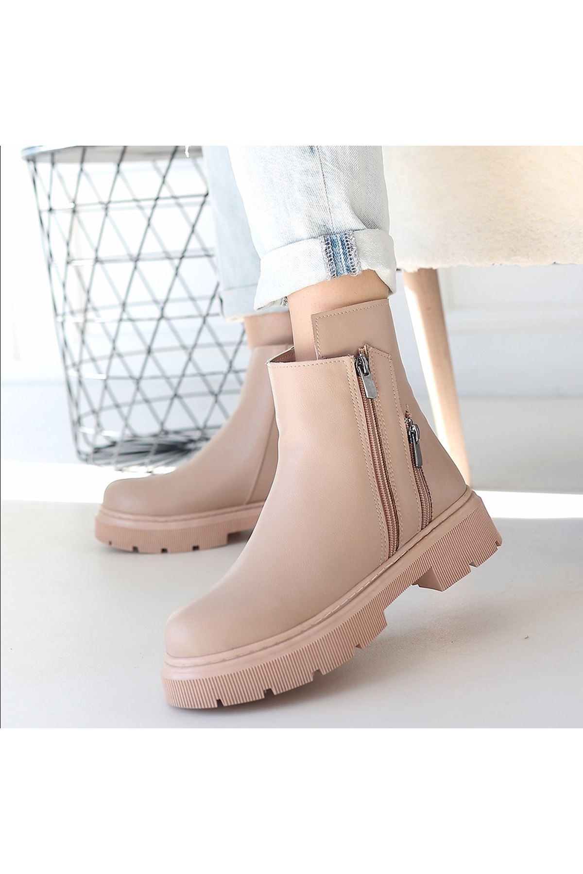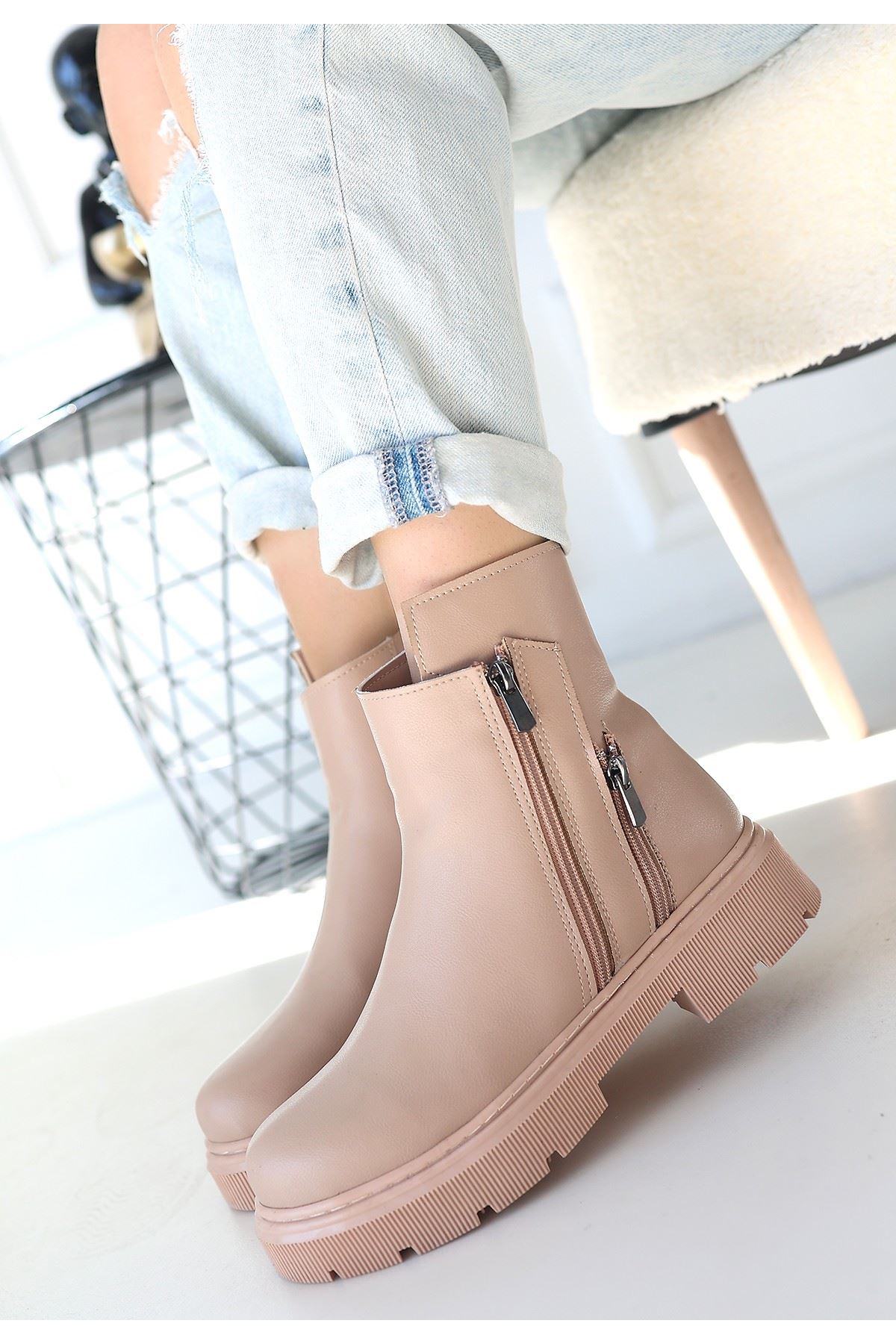 Menta Nude Cilt Fermuar Aksesuarlı Bot