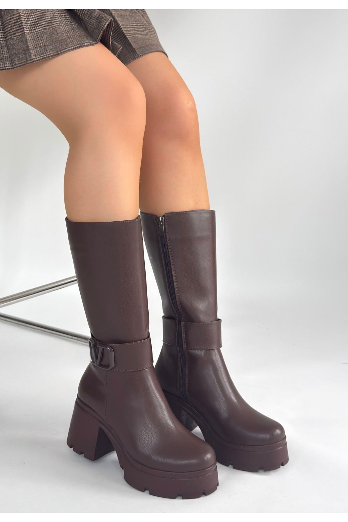 Roksa Acı Kahvei Cilt Topuklu Çizme