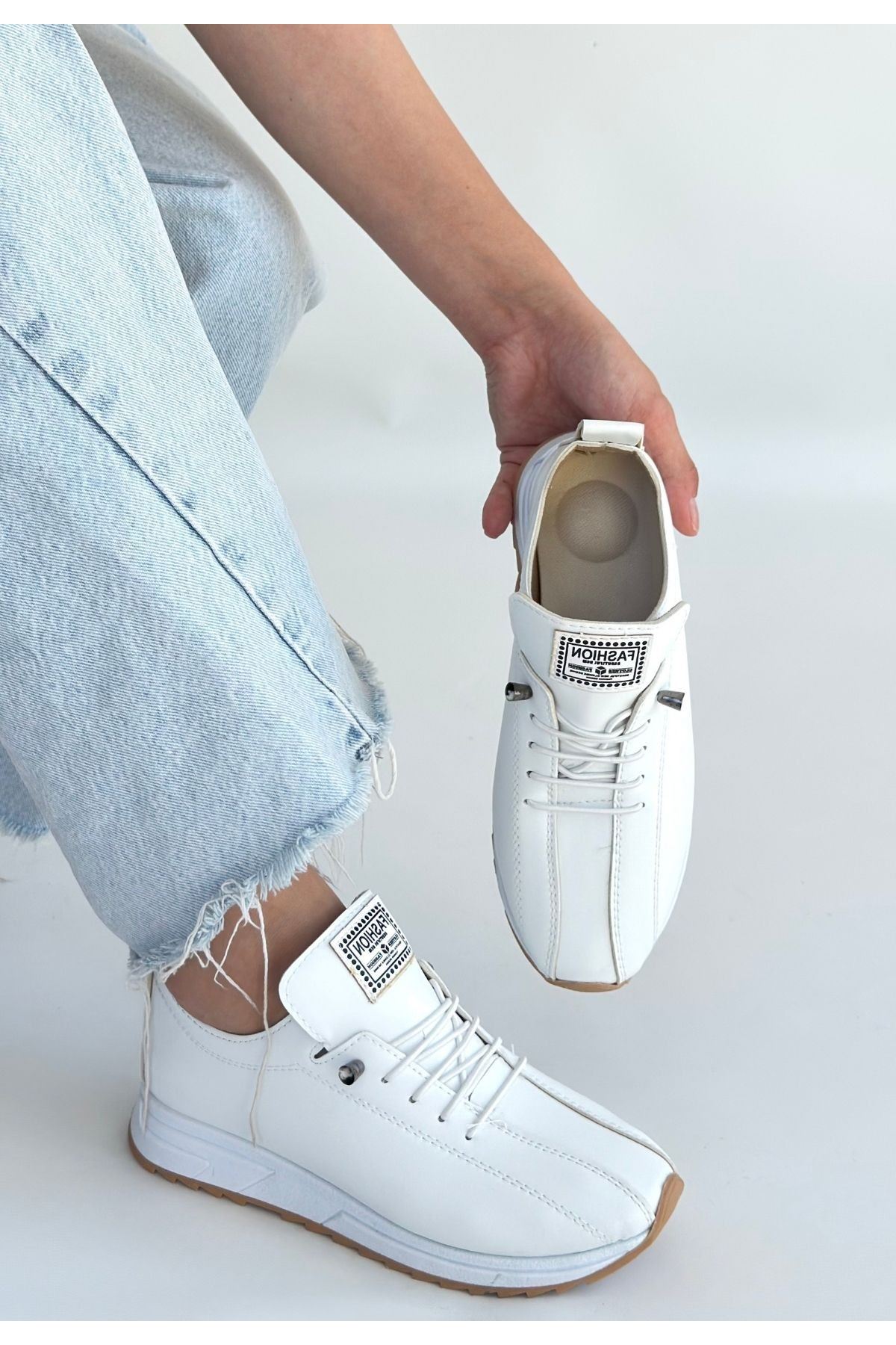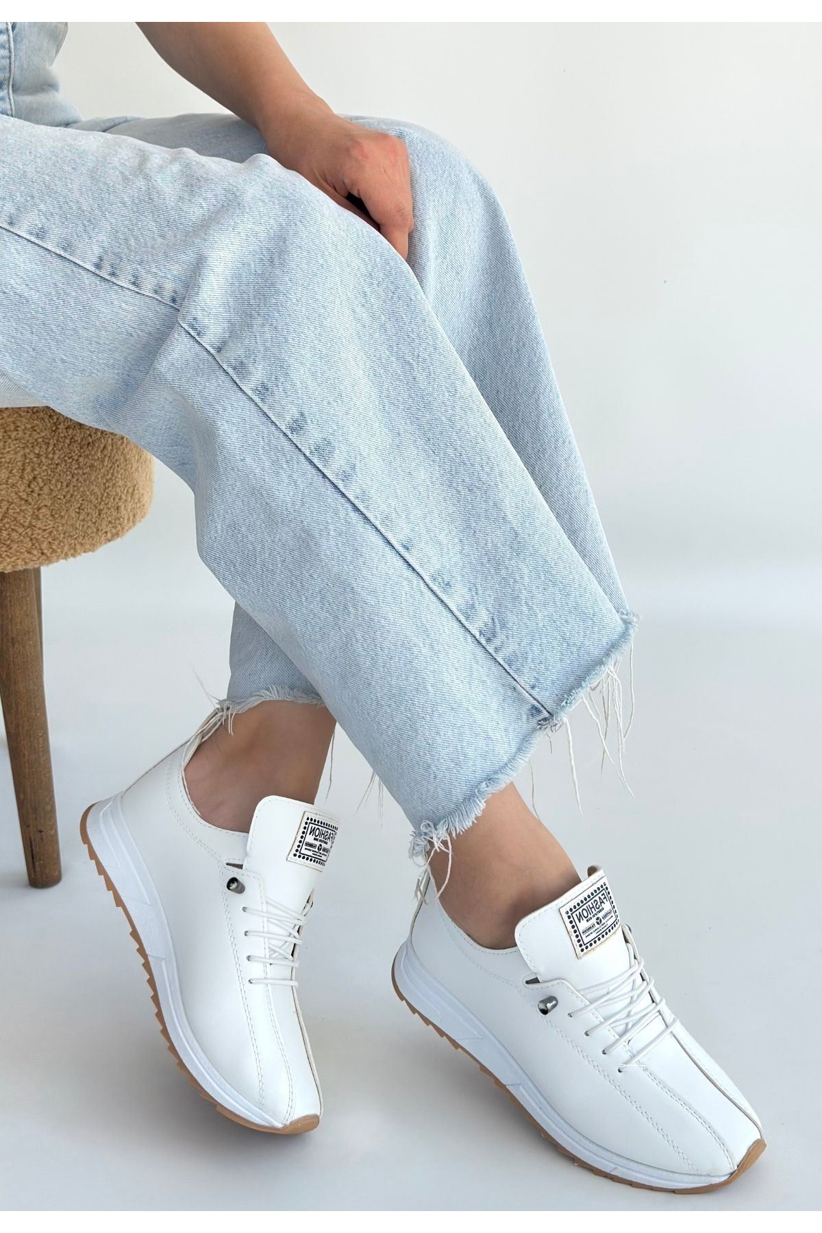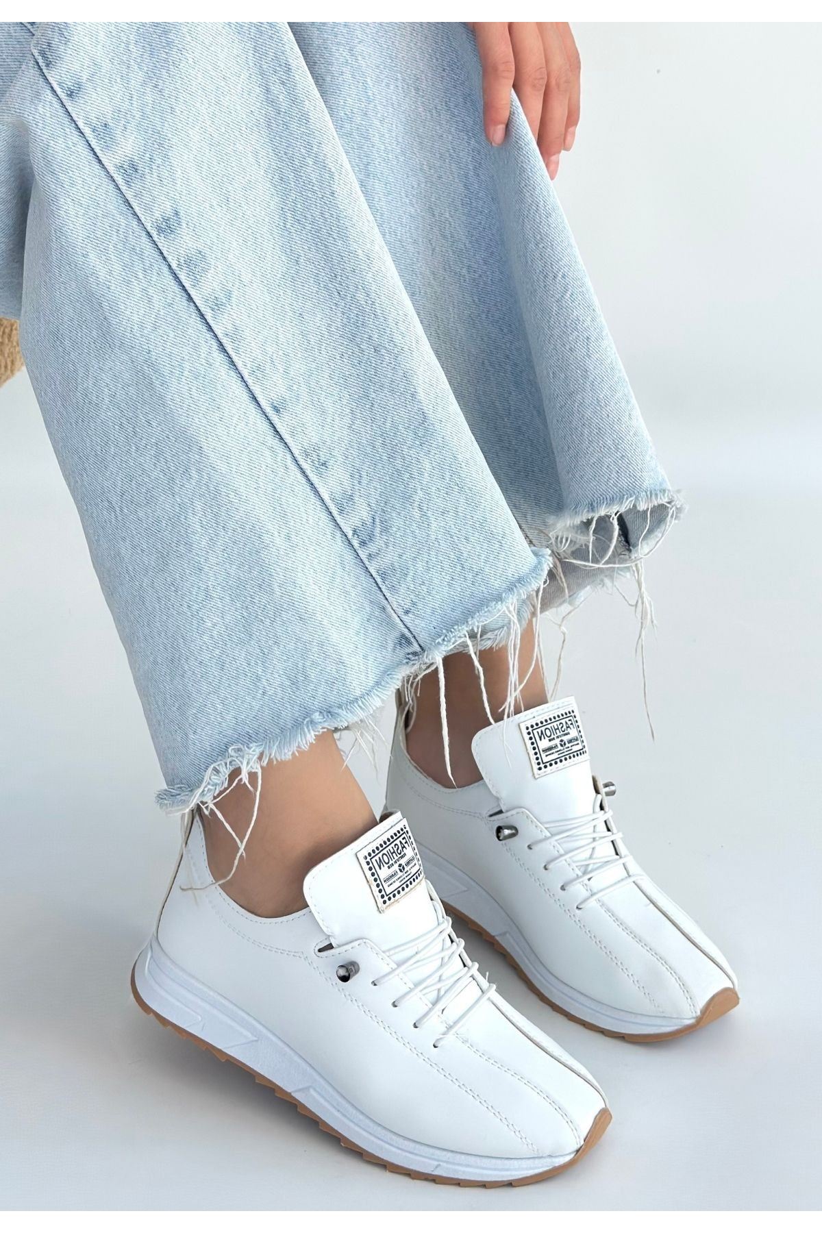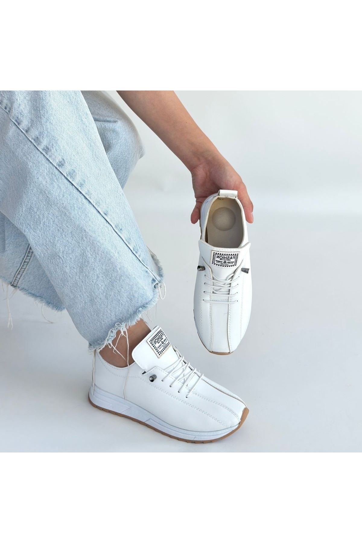 Monya Beyaz Cilt Bağcıklı Spor Ayakkabı