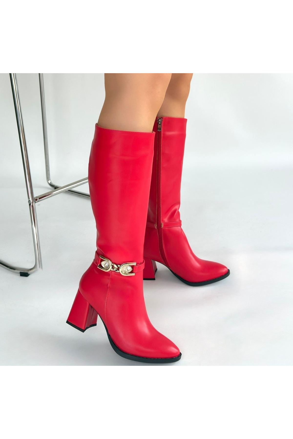 Detay : Topuklu Yandan Fermuarlı Diz Altı Çizme
