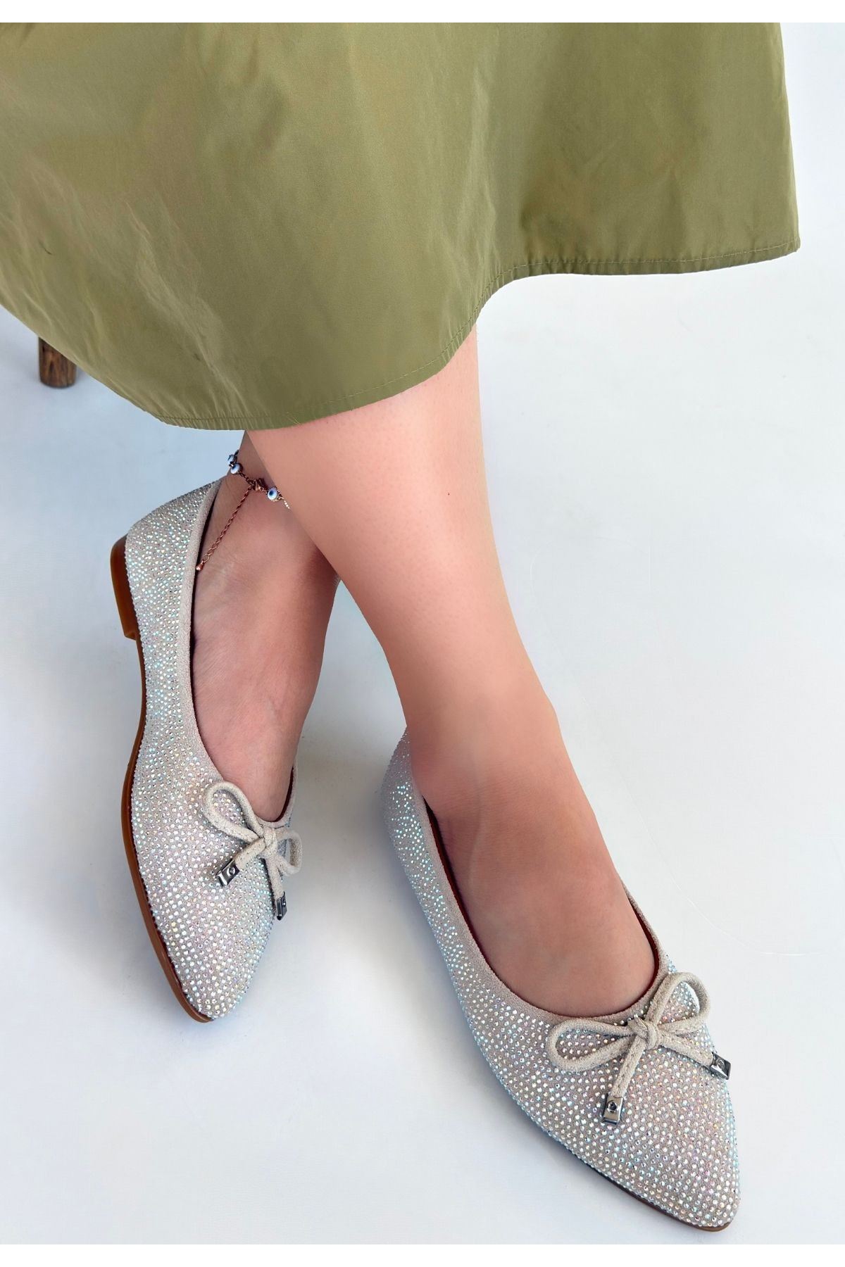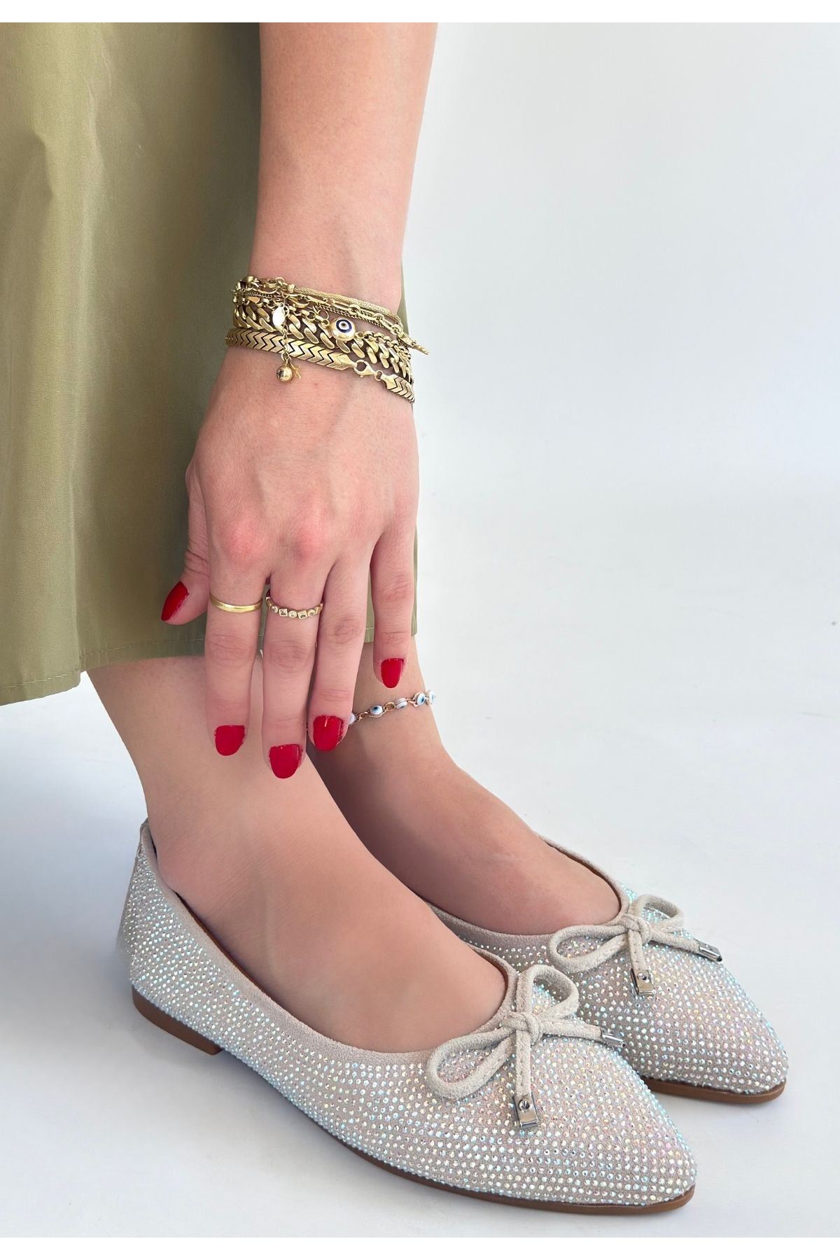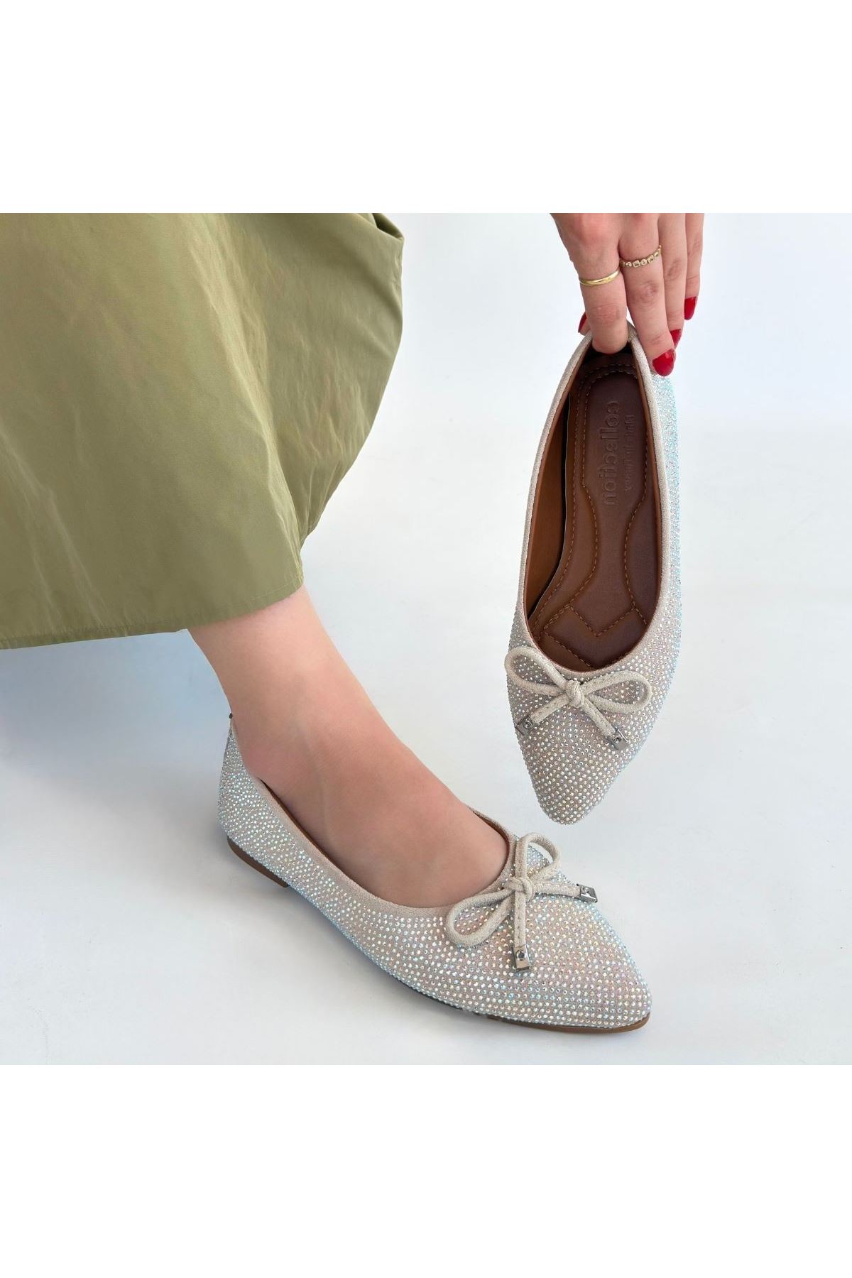 Sarra Bej Saten İşlemeli Babet Ayakkabı