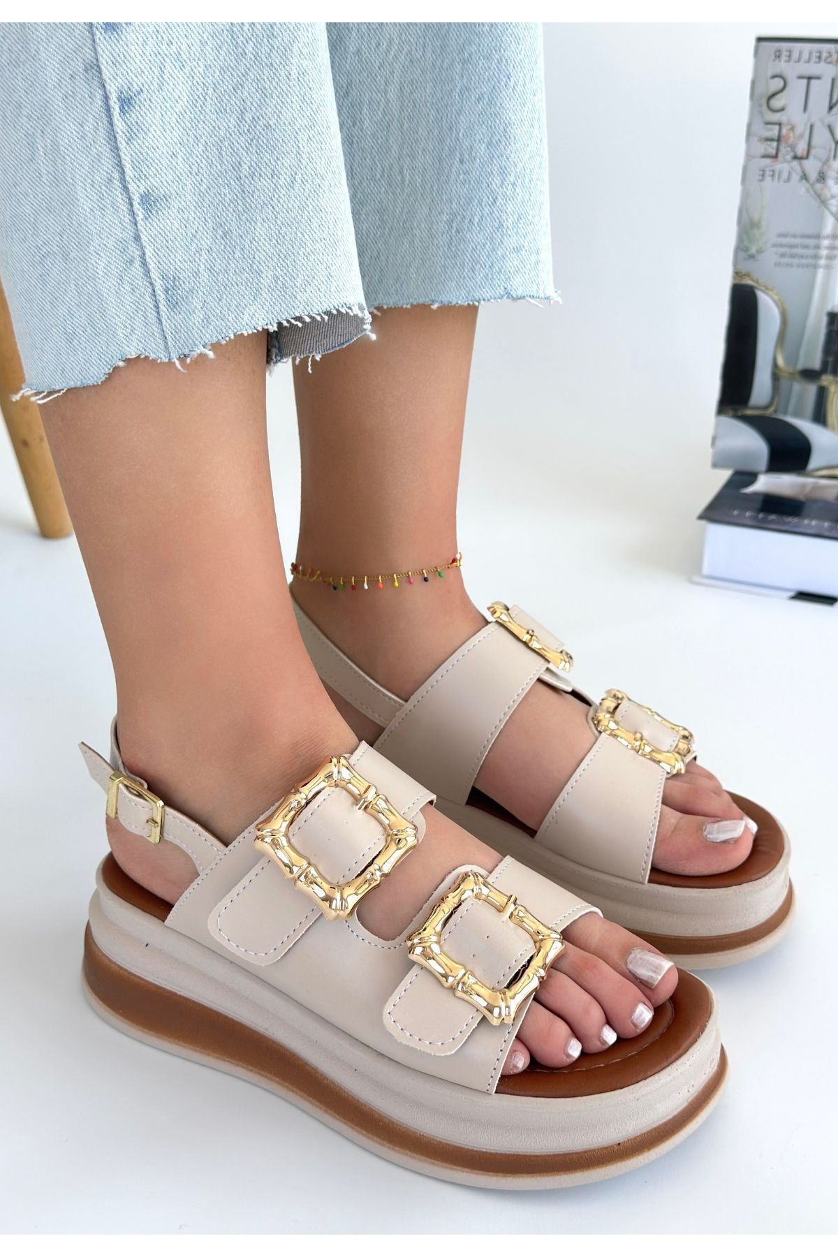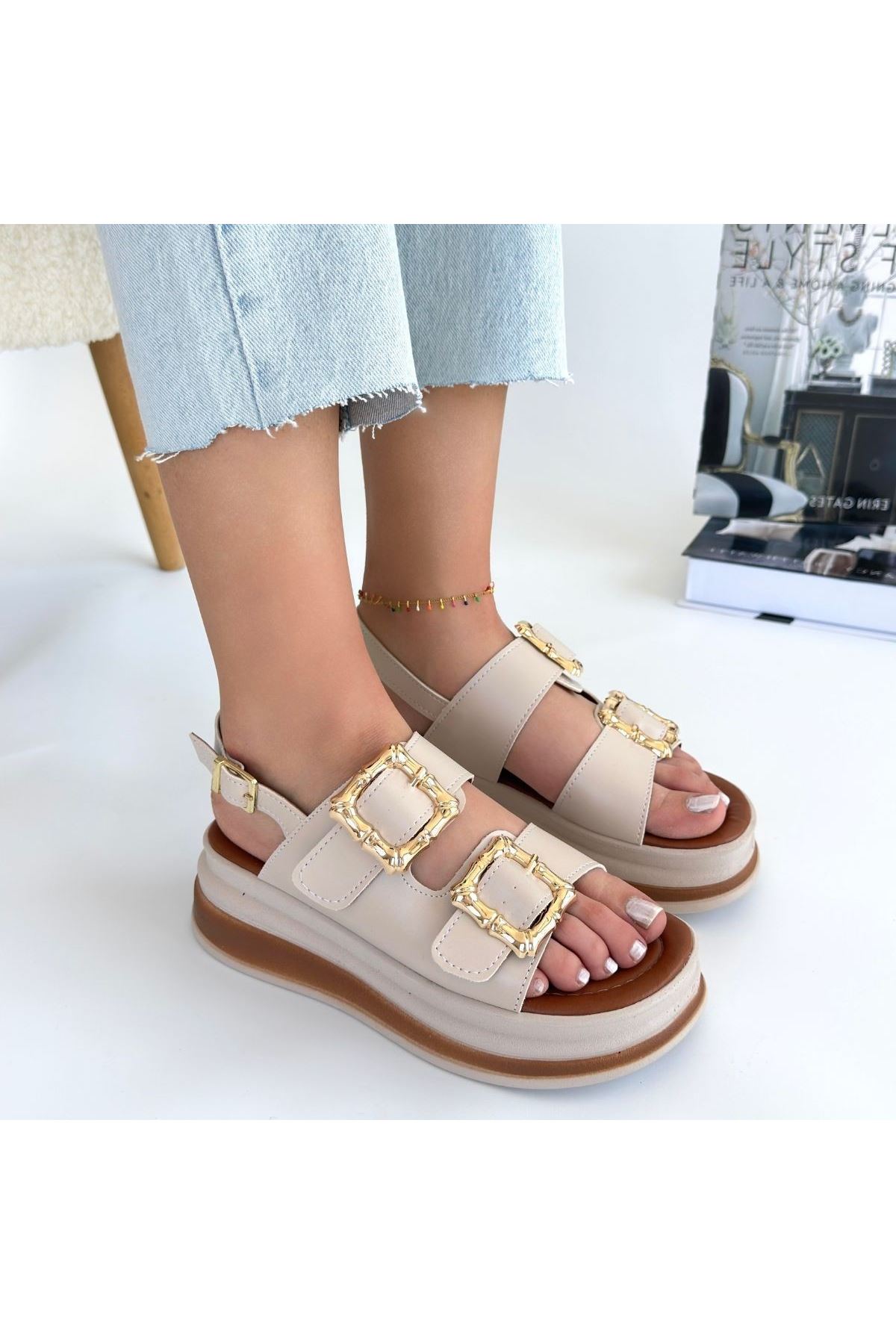 Stan Bej Cilt Sandalet