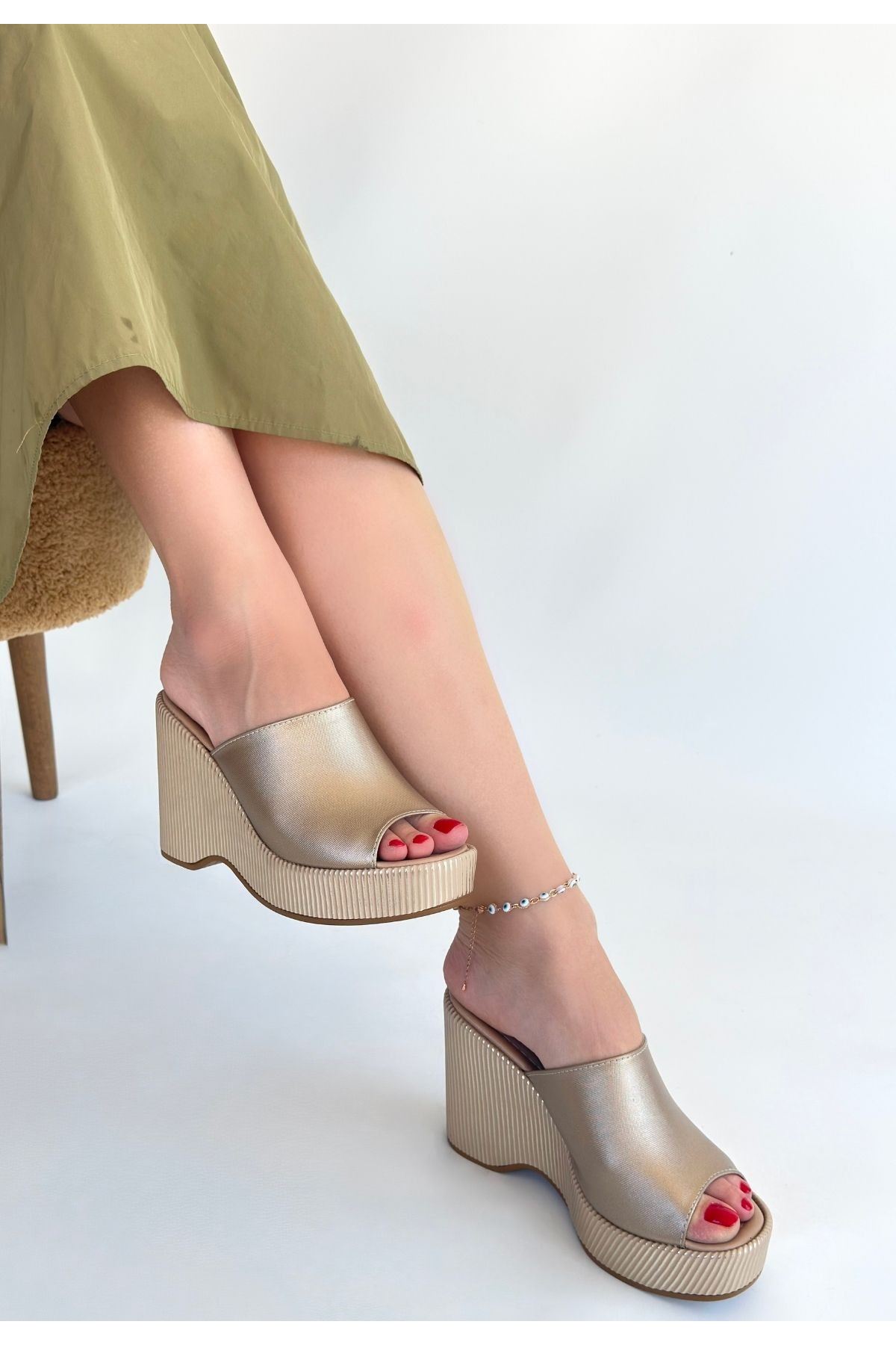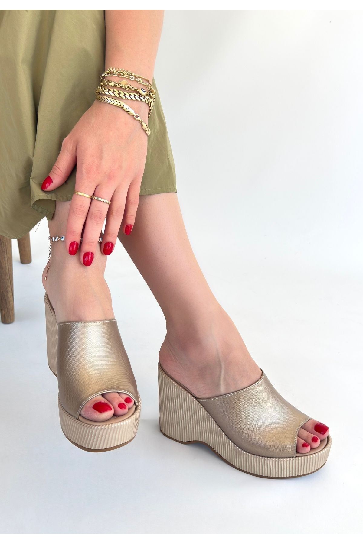 Tlay Bej Cilt Dolgu Topuk Terlik