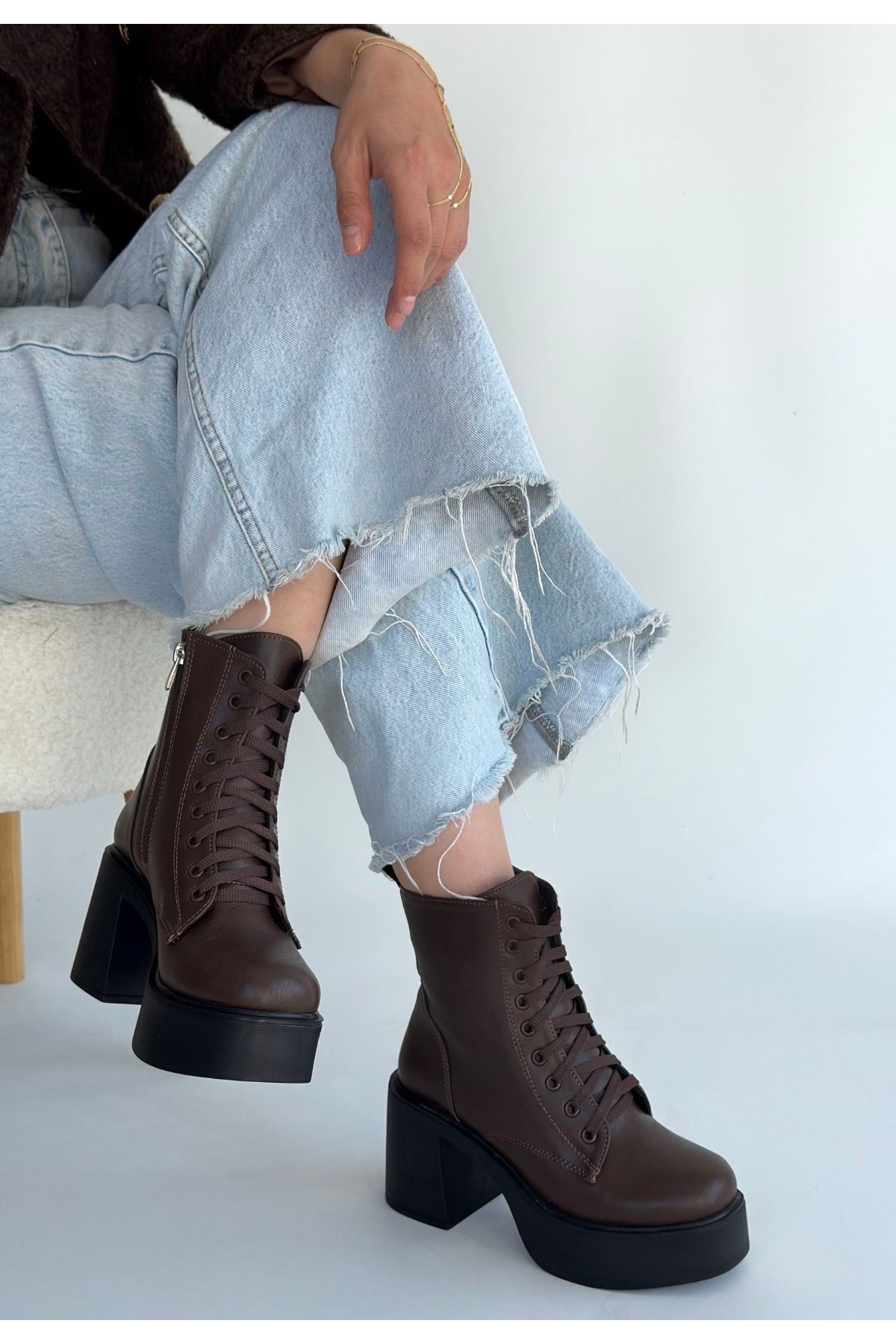 Tsan Kahverengi Cilt Bağcıklı Topuklu Bot