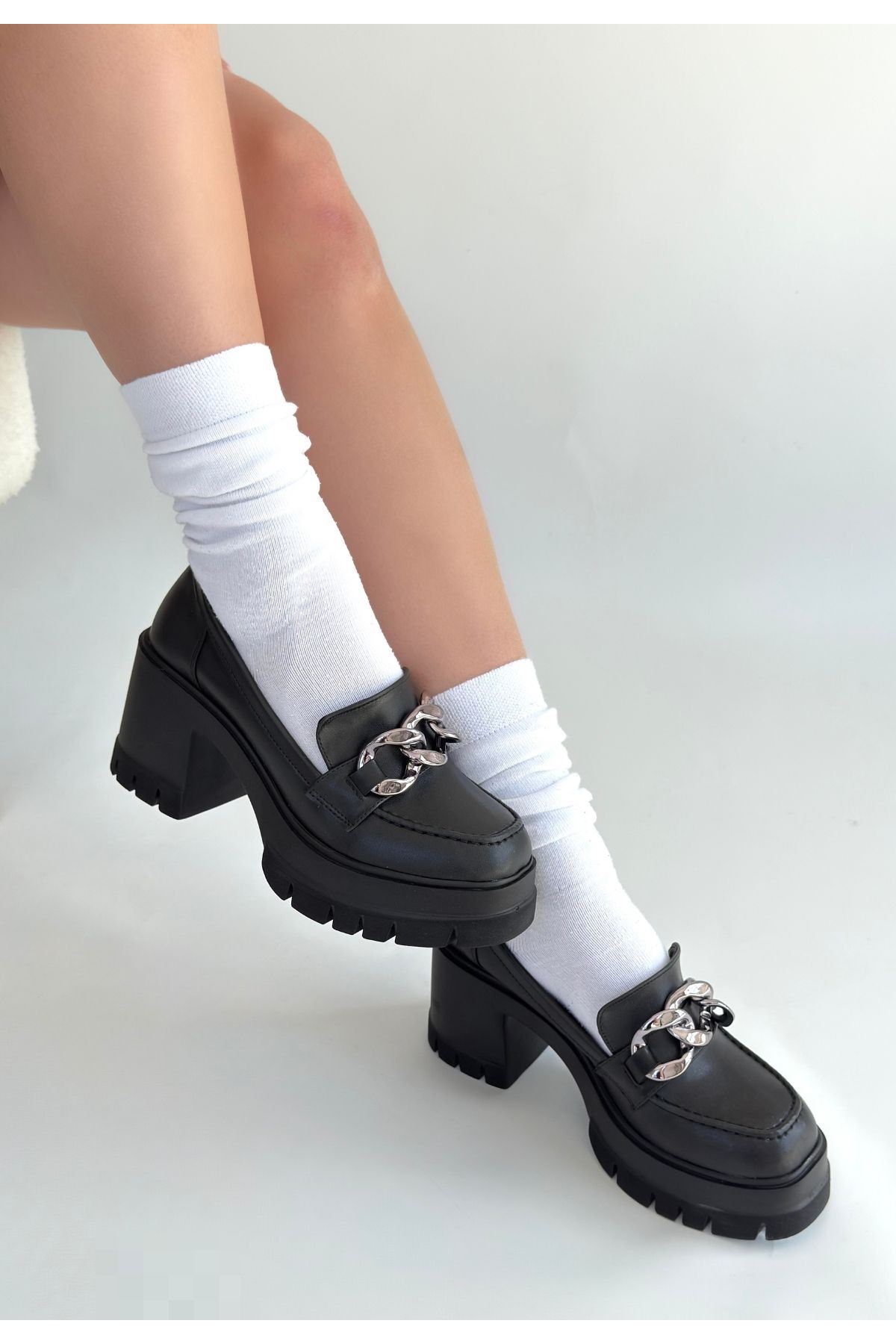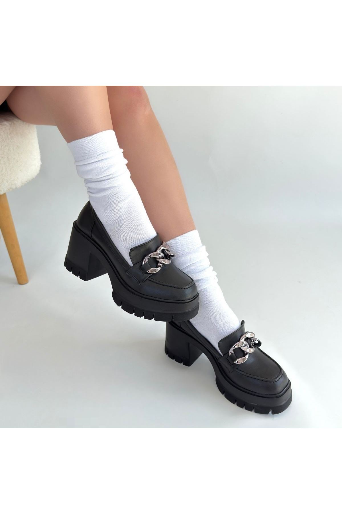 Winar Siyah Cilt Doldu Topuk Ayakkabı