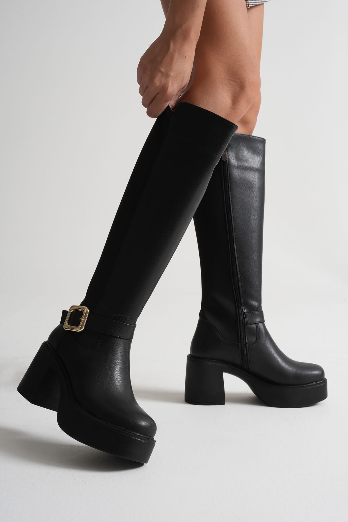 Woly Kadın Günlük Siyah Tokalı Çizme