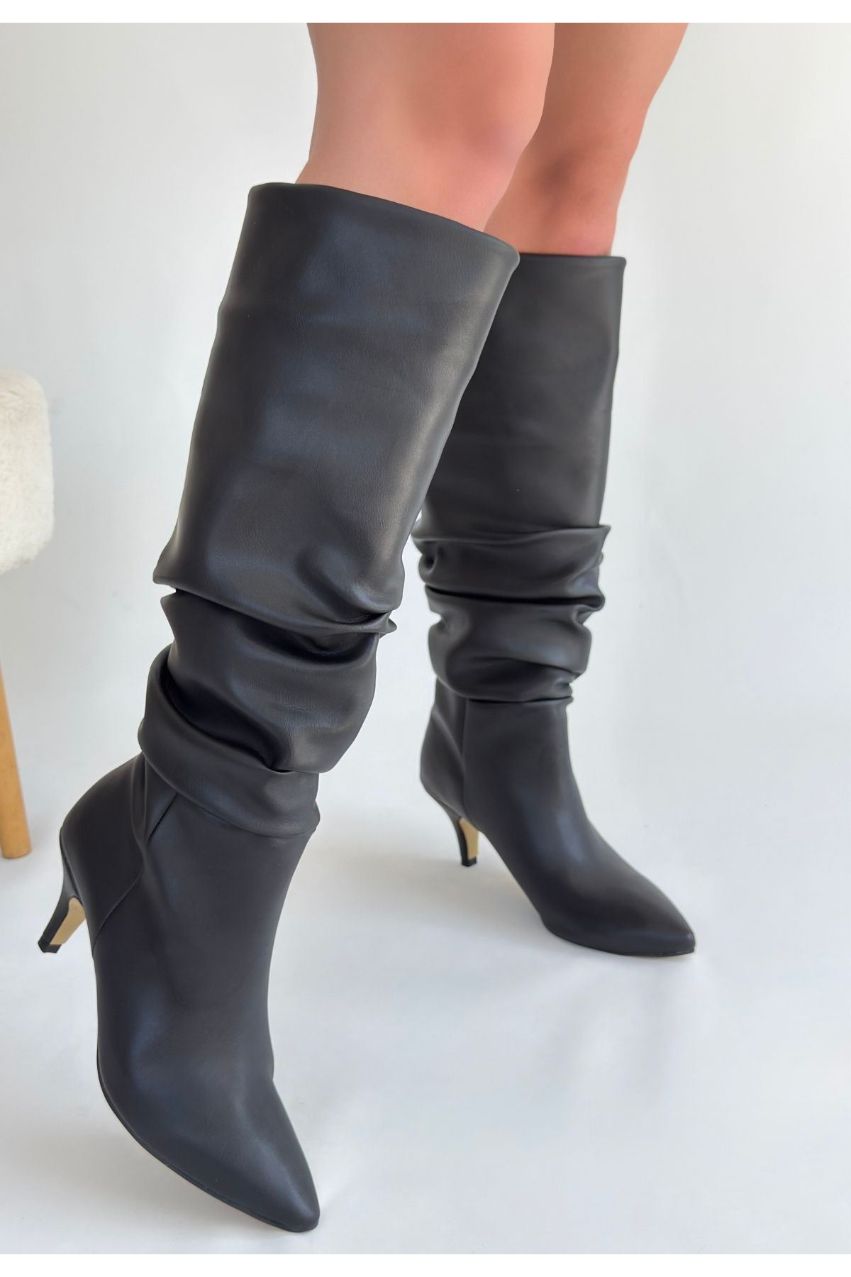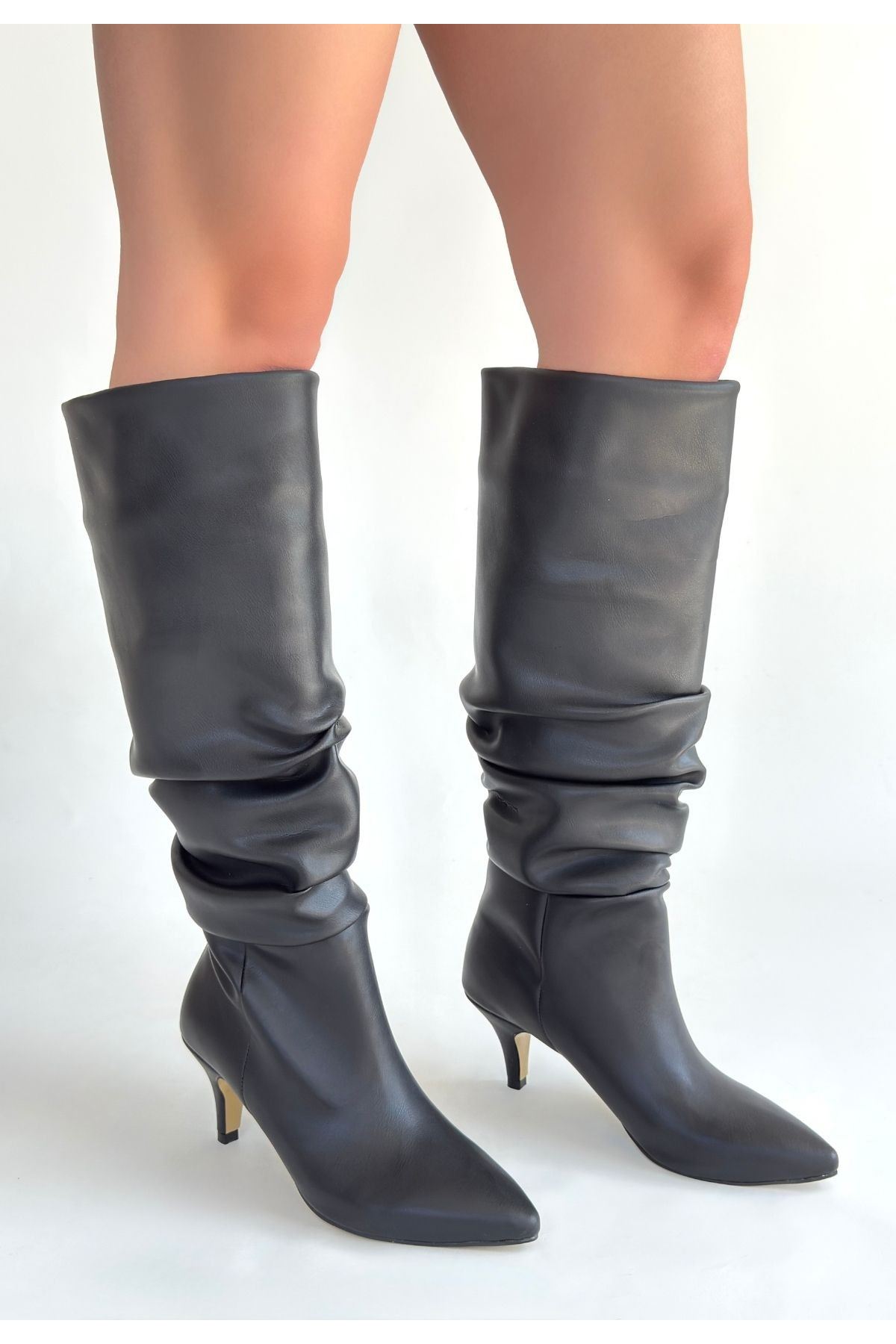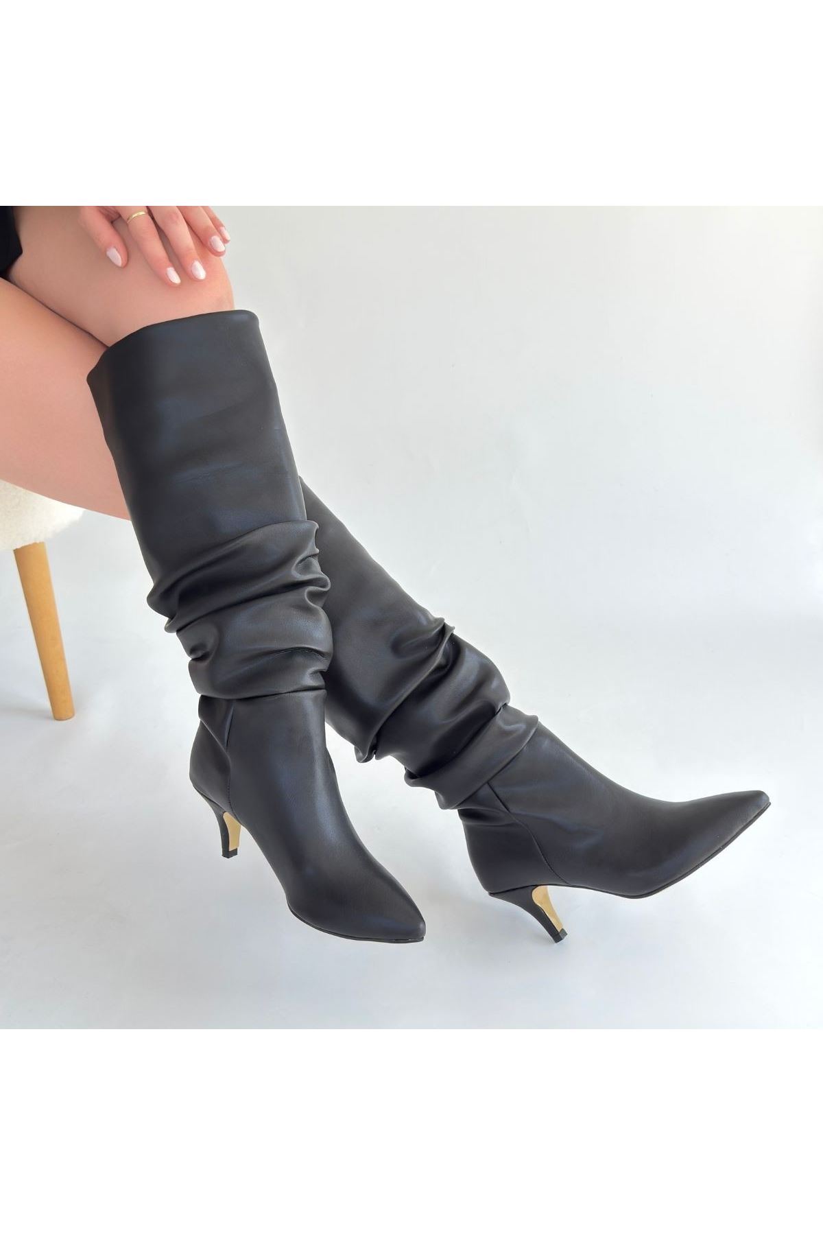 Detay : Topuklu Diz Altı Körüklü Çizme